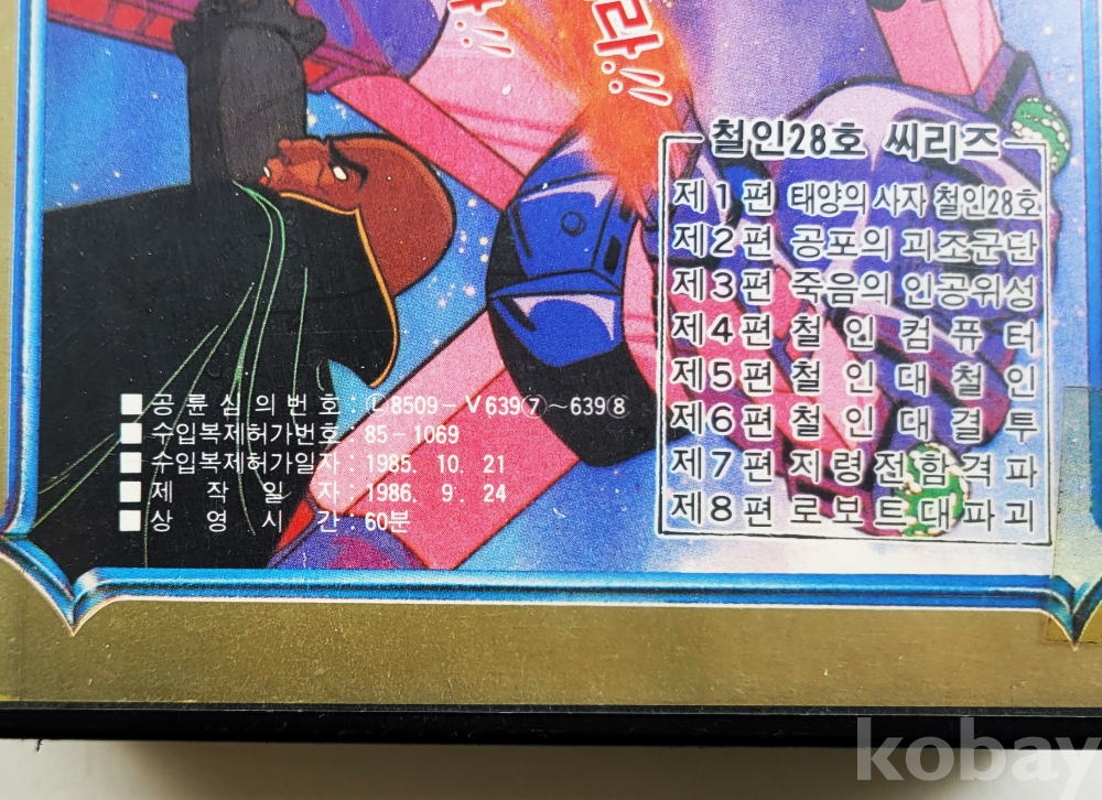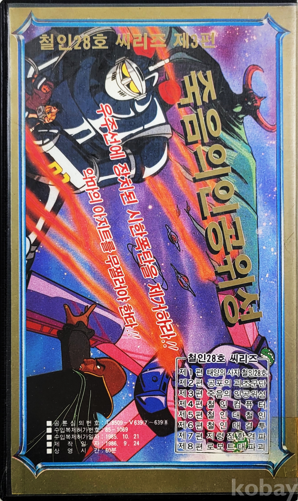 물 품 명 | 철인28호 (3) : 죽음의 인공위성 / 작은 케이스 / 1986년 / 대영비디오프로덕션 |