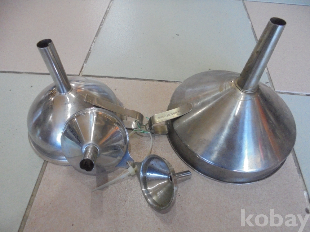 입 지름이 작은병등에 액체류넣을때 흘리는것을 방지하기위한 좋은스텐으로만든 유용하게사용하는 큰깔떼기 2점과 작은 깔떼기2점