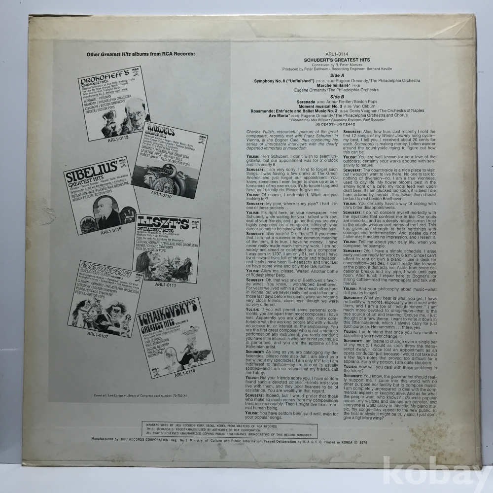 LP 10,400-60 Schubert's Greatest Hits _ 자켓 EX 알판 EX 74 년 국내반