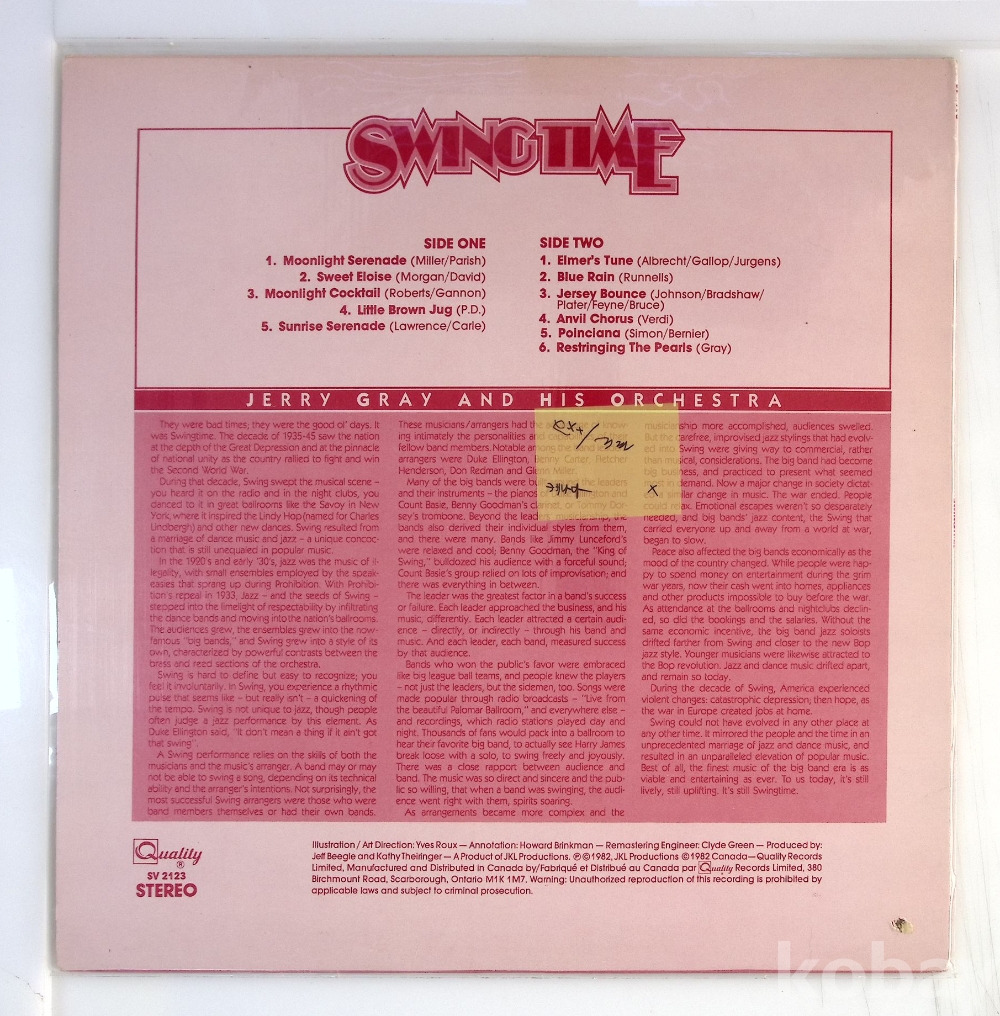 Jerry Gray And His Orchestra – Swingtime Volume 2 (11 Of The Greatest Big Band Hits) / 캐나다반