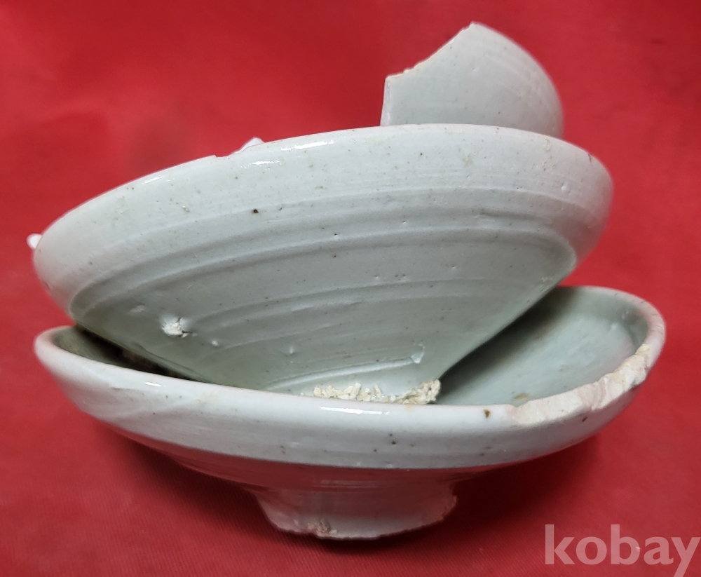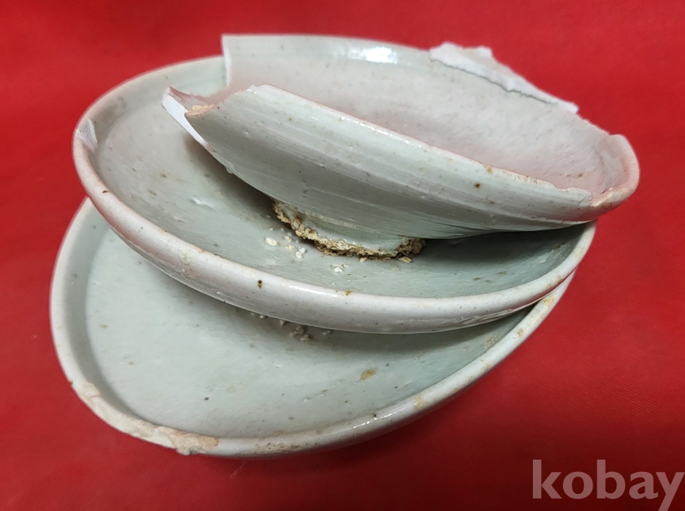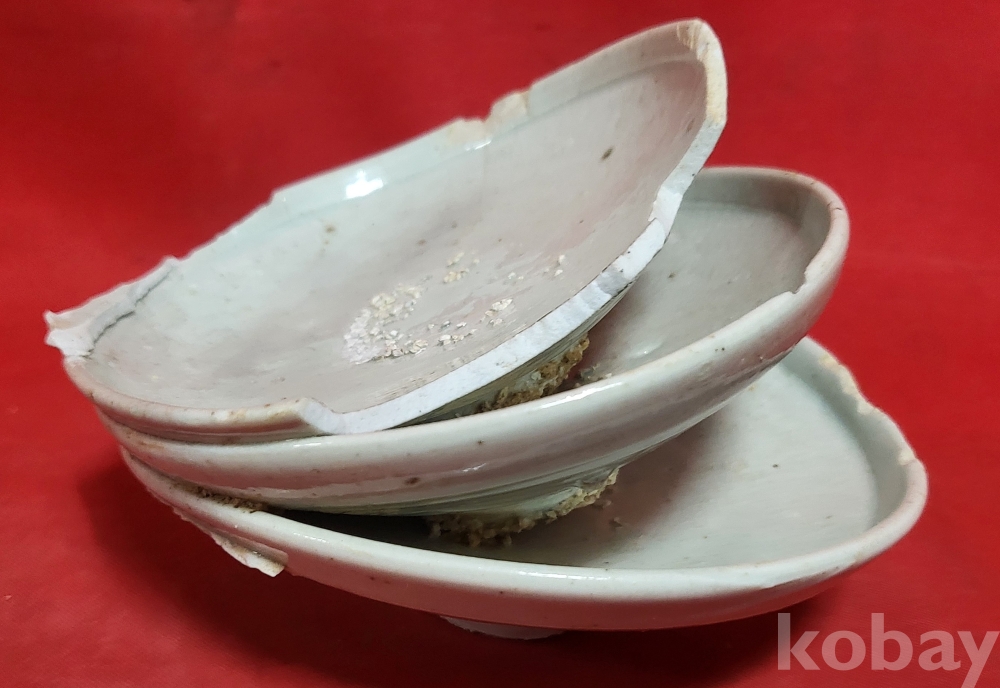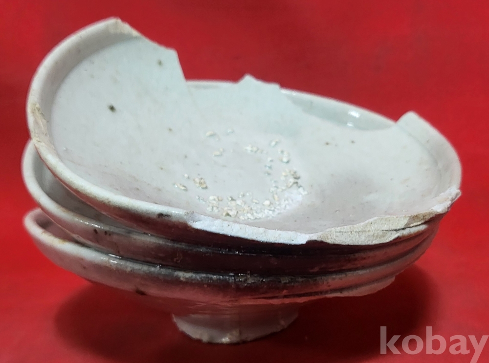 조선시대 백자 접시 3개가 가마에서 달라붙은 특별한 기물입니다,