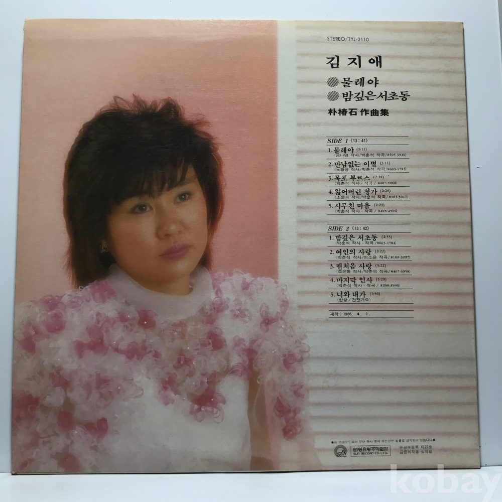 LP 83,745-3 김지애 - 물레야/ 밤깊은 서초동 자켓 EX+ 알판 EX 86 년 국내반