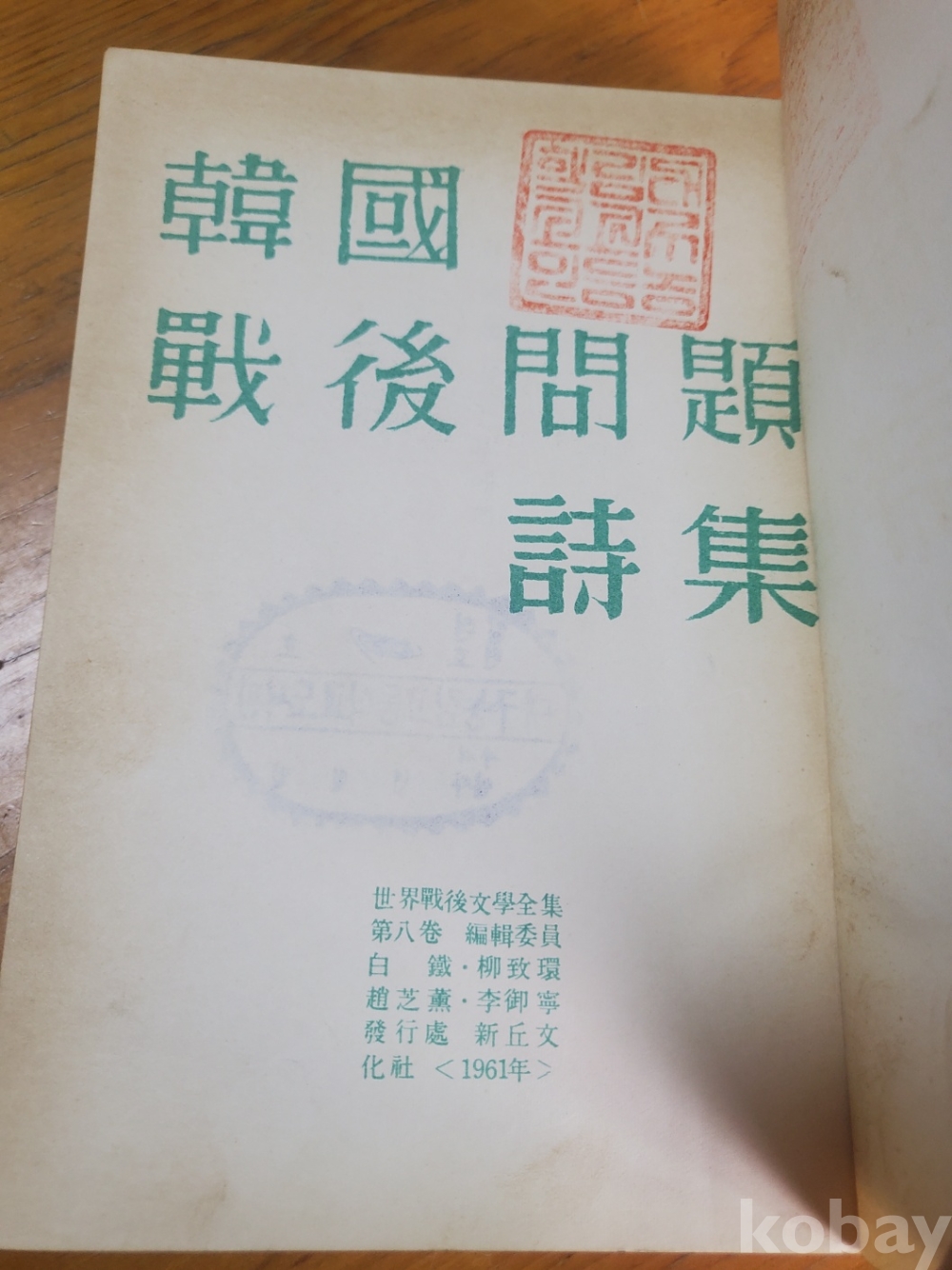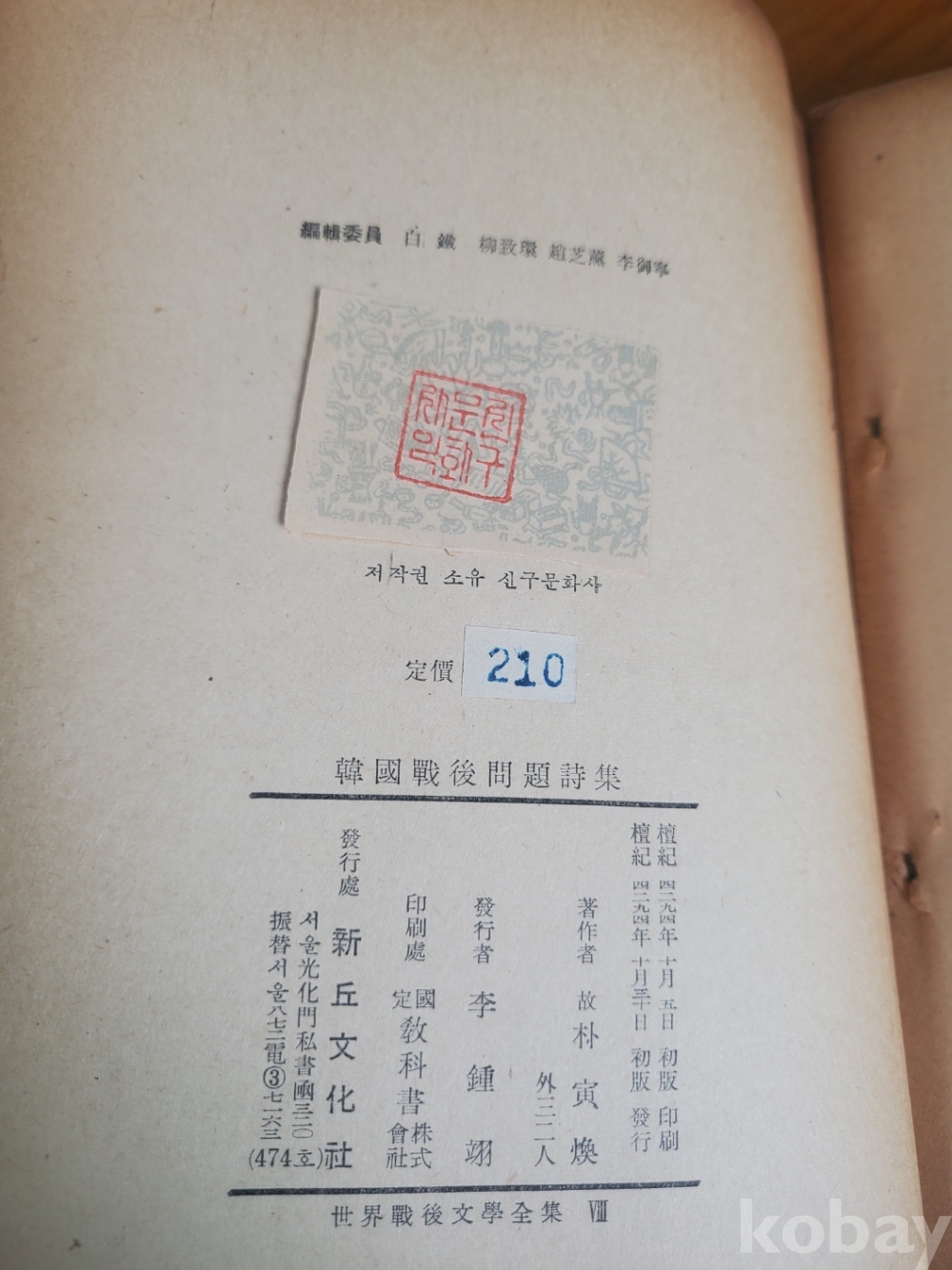 세계전후문학전집 8 - 한국전후문제시집, 1961년 초판, 428쪽, 상태 상,