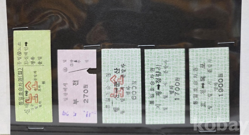 -기차, 지하철, 버스표등 다양합니다.