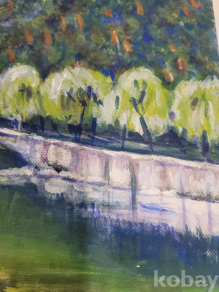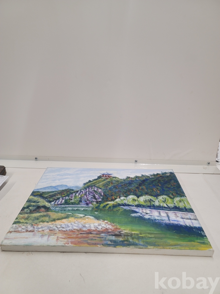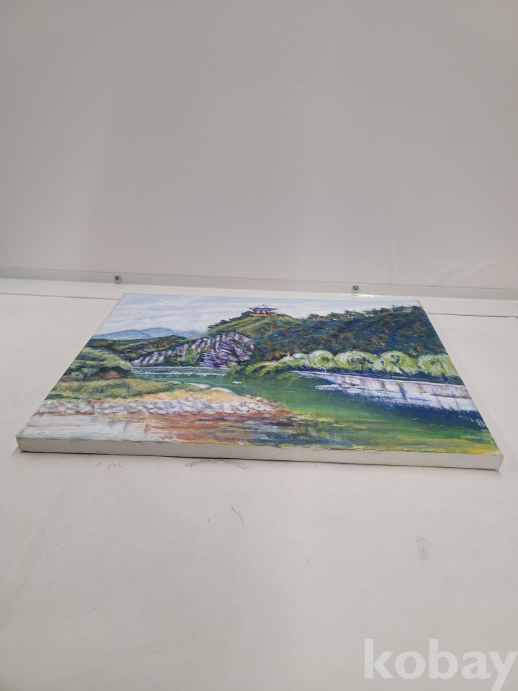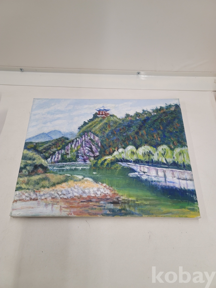[*천원행복*] L - 2 - 0489 정자와 계곡 풍경화 [유화,작가미정] 41*32
