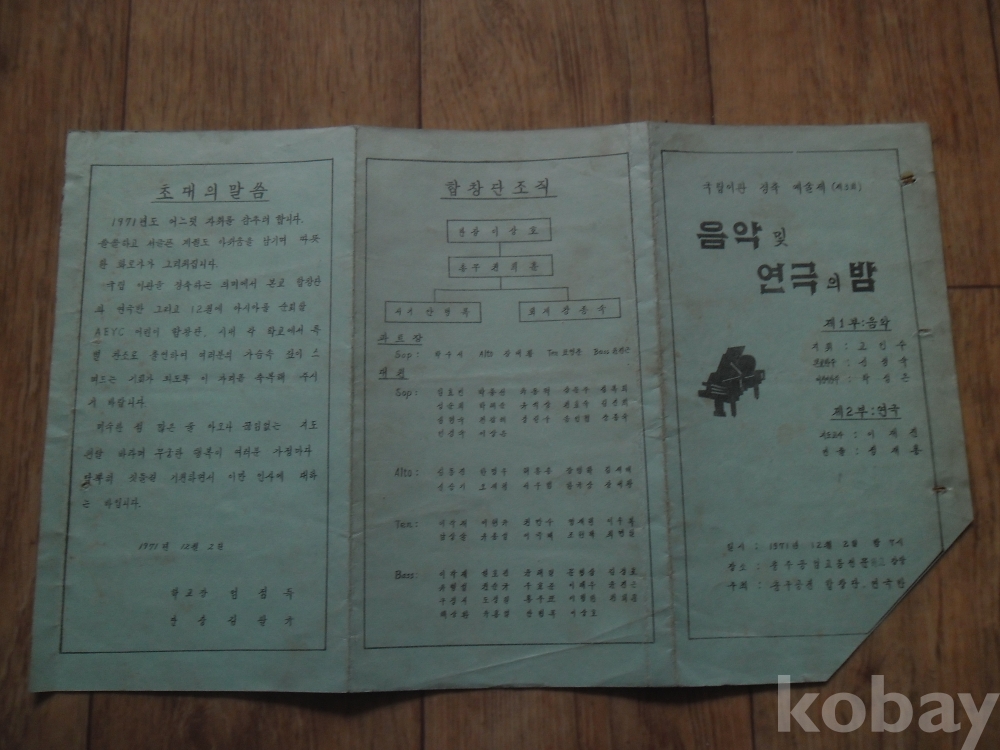 1971년 충주공전 국립이관 경축 음악 및 연극의 밤 목록