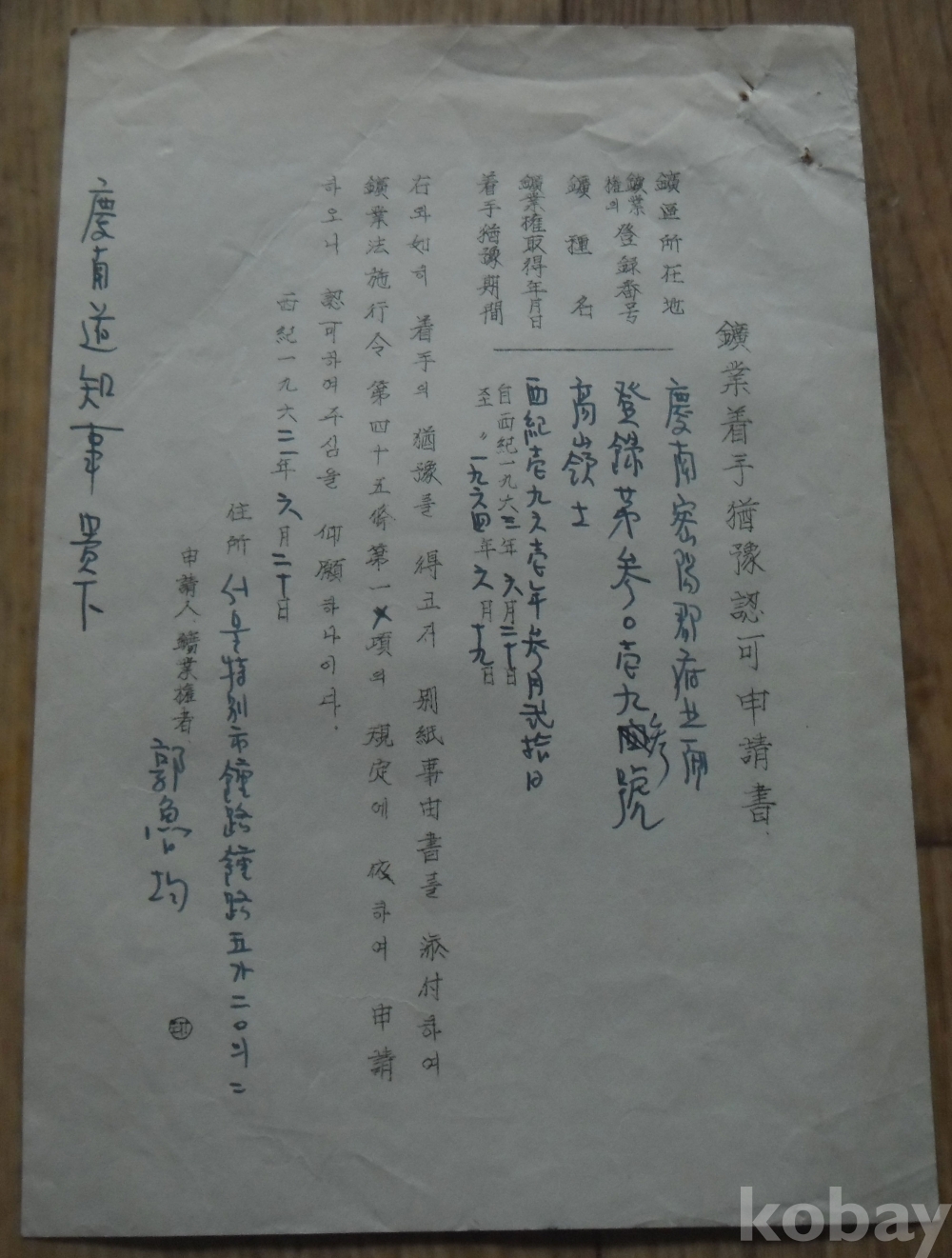 1963년 광업착수유예인가서(경남)