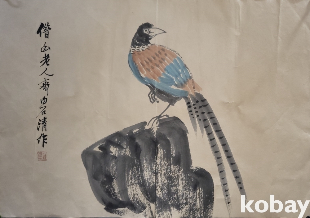 중국화가 제백석 수결이 보이는 종이에 채색된 화첩에서 떨어진 그림입니다,