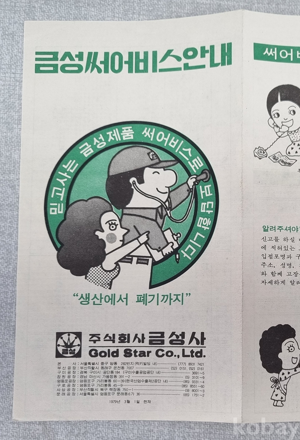 ro-2 / 80년대 만화 삽화 금성사에서 발행한 가전제품 **'서비스 카드(보증서)