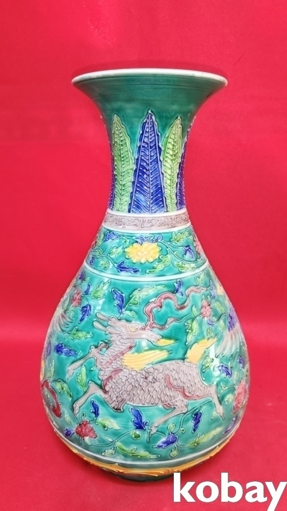 법화채( 明末 琺華彩) 상봉(雙鳳) 쌍마용((雙馬龍) 문양 천구병입니다.
