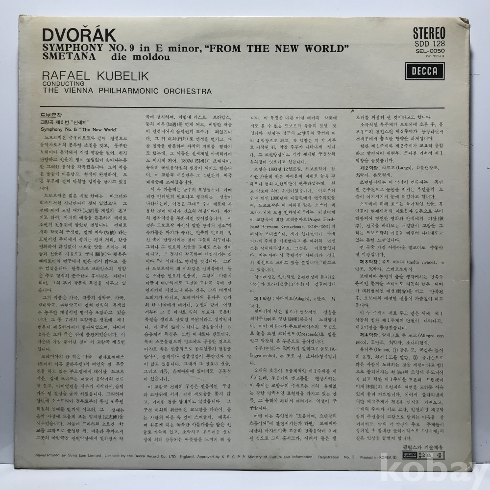 LP 10,720-14 Dvořák: Symphony No. 9 From the New World . 자켓 EX 알판 EX 72 년 국내반