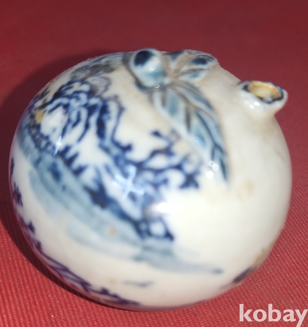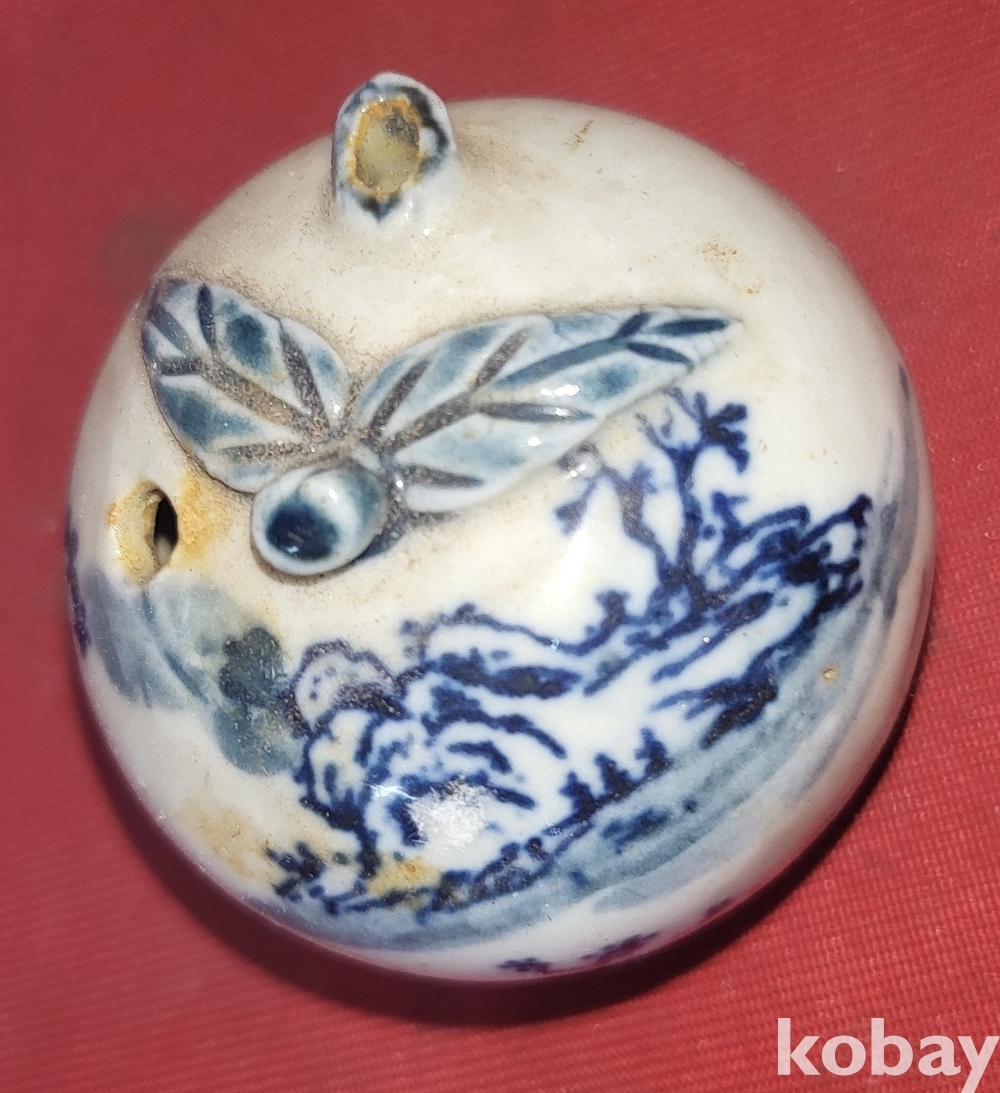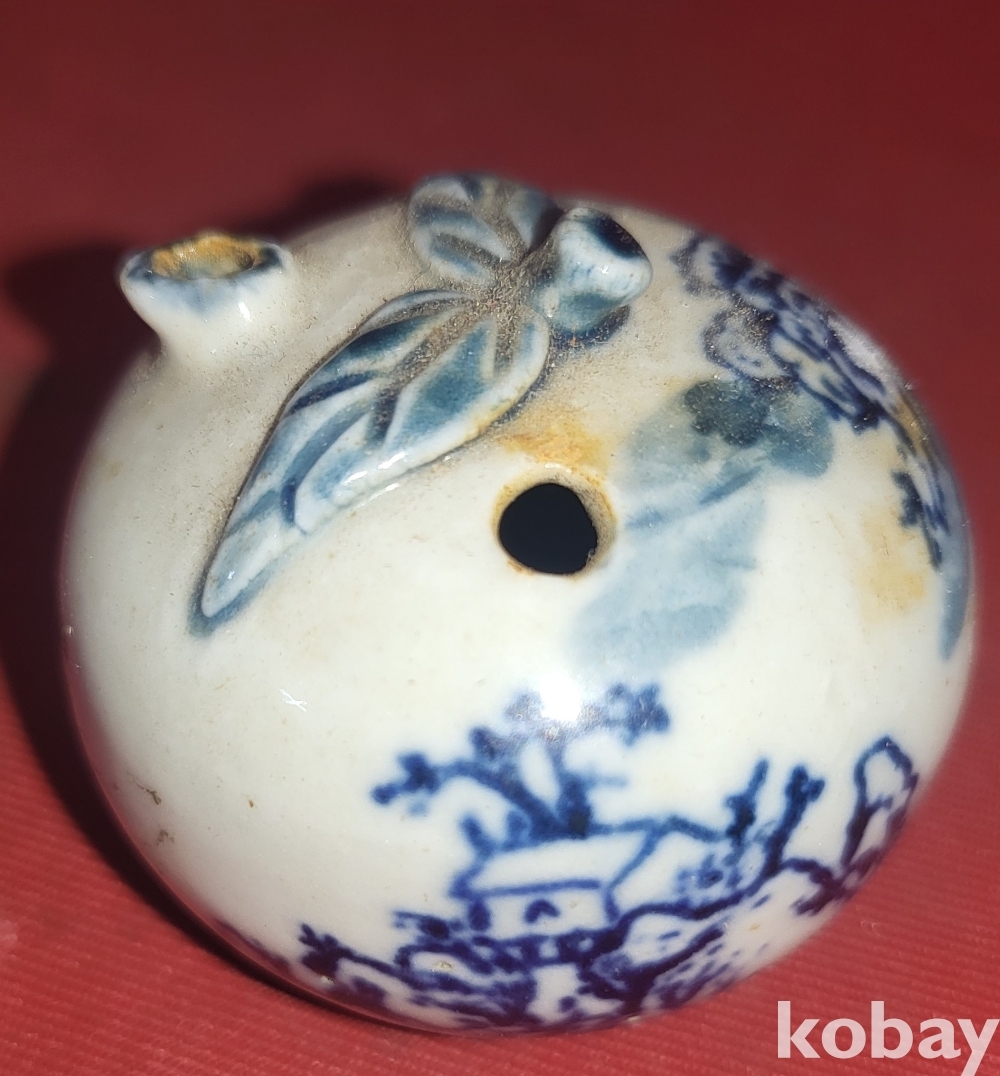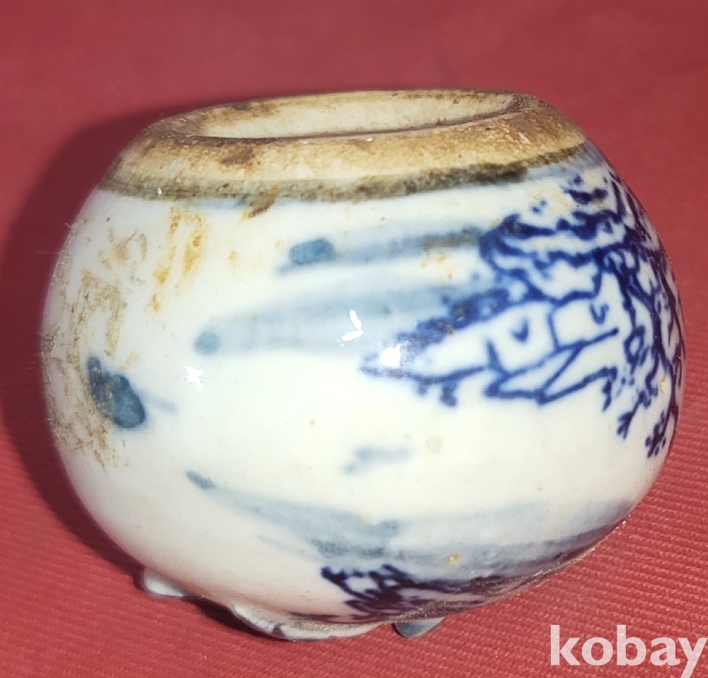 100년 이상의 연대 갖춘 산수 문양 휴대용 연적입니다,