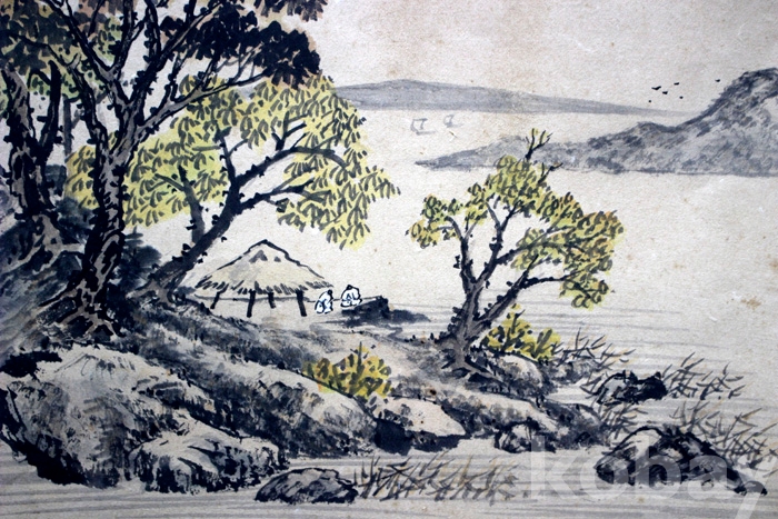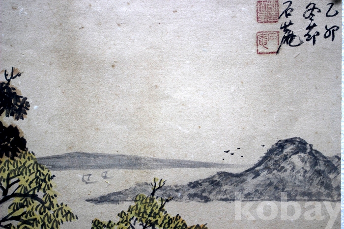 石菴(석암)의 추경산수 - 원두막이 있는 강가의 초가을 풍경