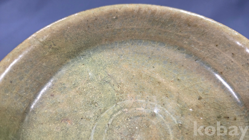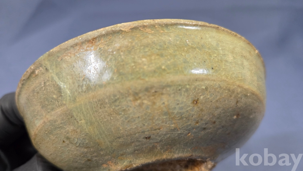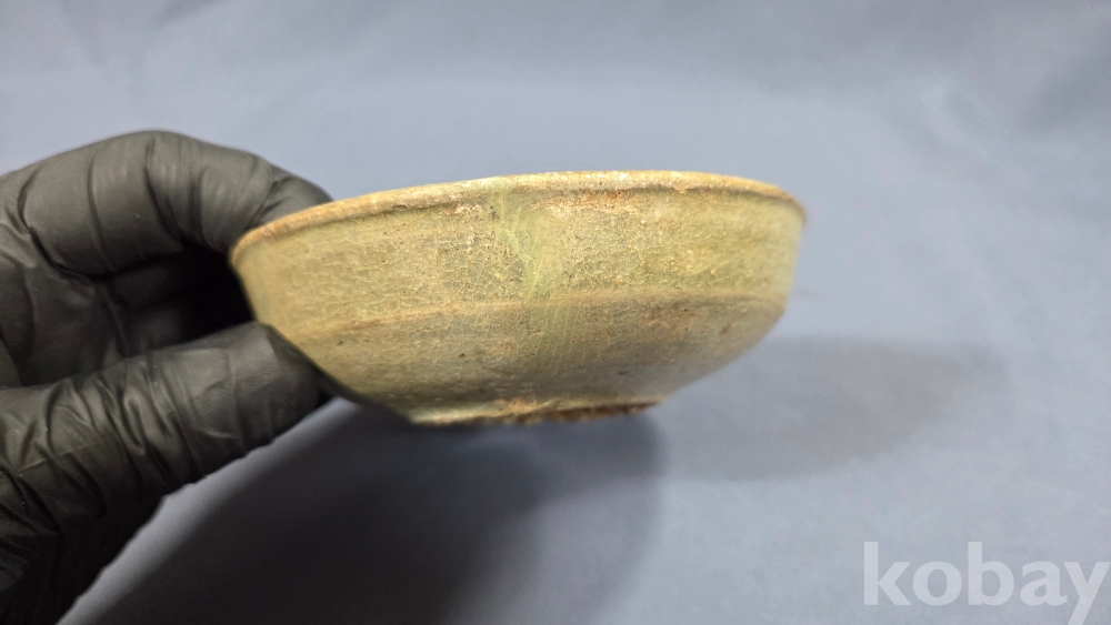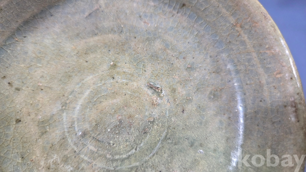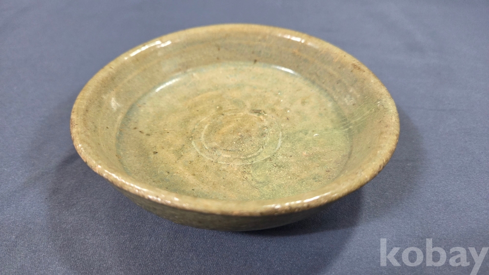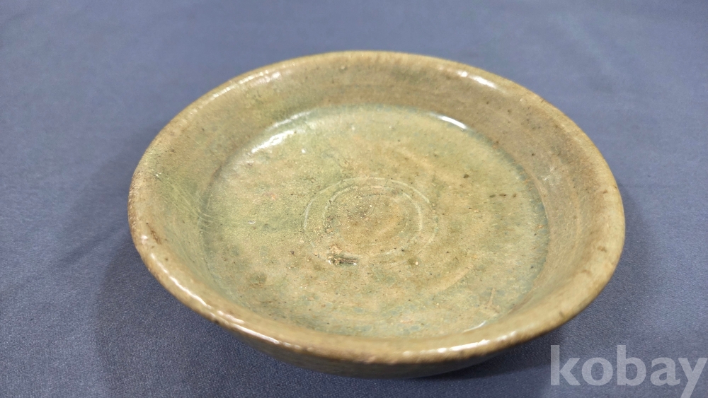 살짝 찌그러진 모습의 고려시대 청자 접시입니다.