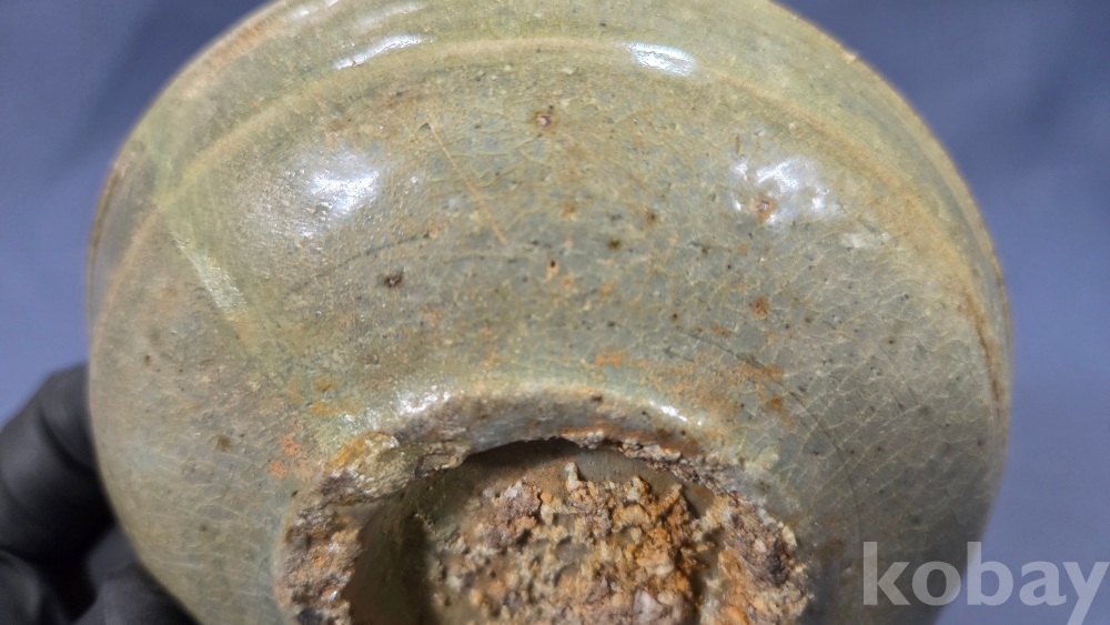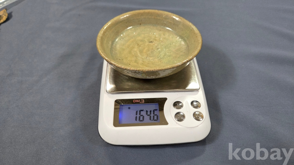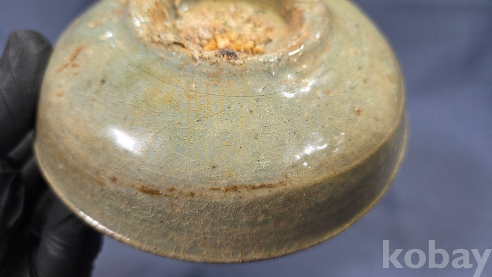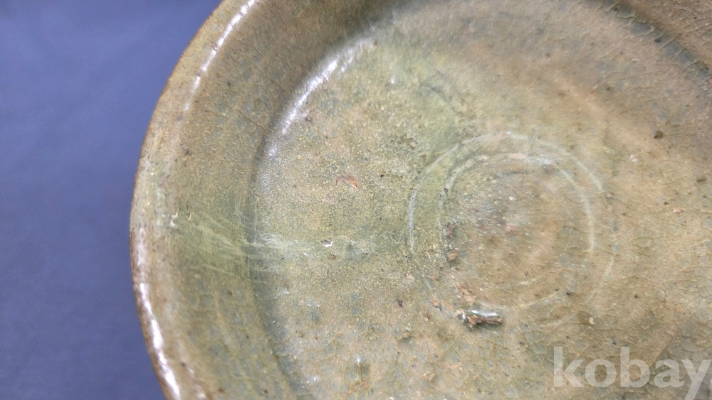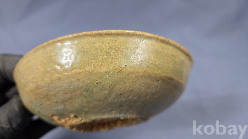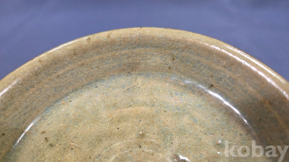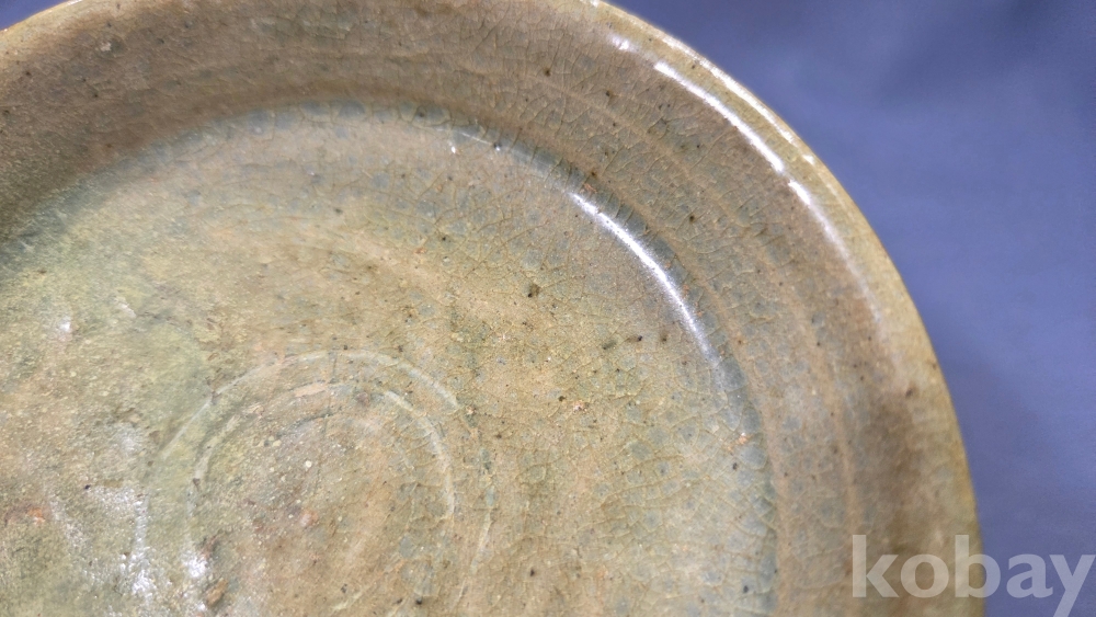 살짝 찌그러진 모습의 고려시대 청자 접시입니다.