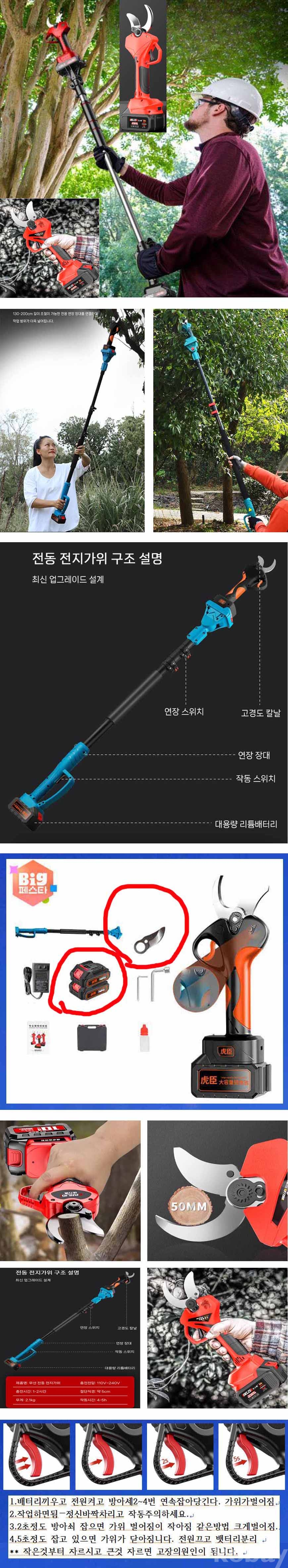 == 장대 충전 전지가위=== (밧데리2개, 칼날여분1개드림) ==