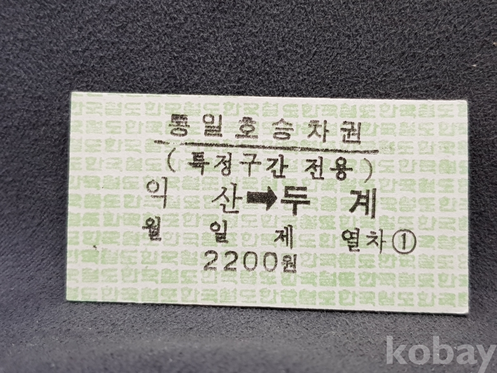 - 미사용 통일호 승차권(특정구간전용) " 익산 ▶ 두계 " 2200원
