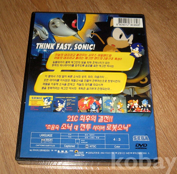 미개봉품 / SEGA / SONIC THE HEDGEHOG - 소닉 VS 로봇 소닉 DVD입니다. (극장판)