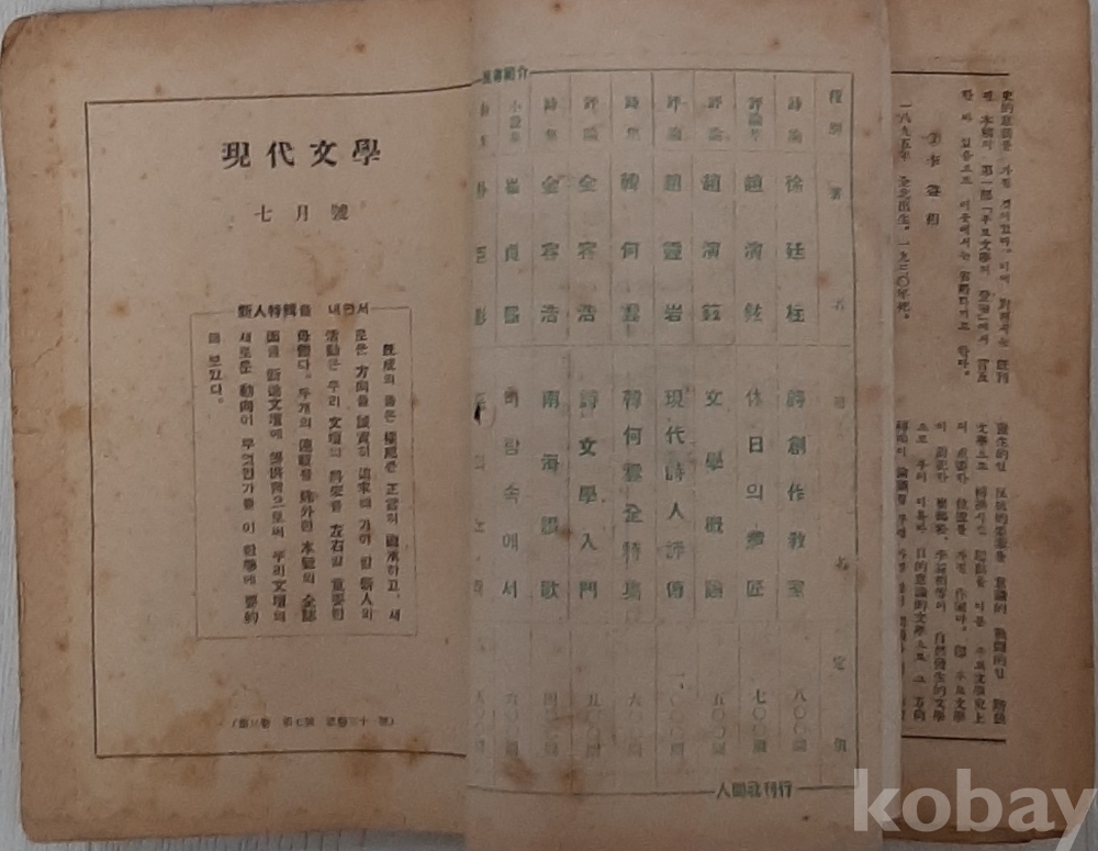 (별도)현대문학1961년8월호 NO80 : 낙장 없음, 낙서 없음, 목차 반쪽 훼손, 앞표지 책등 손상