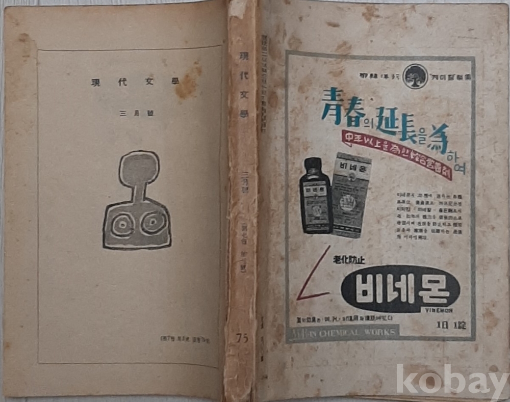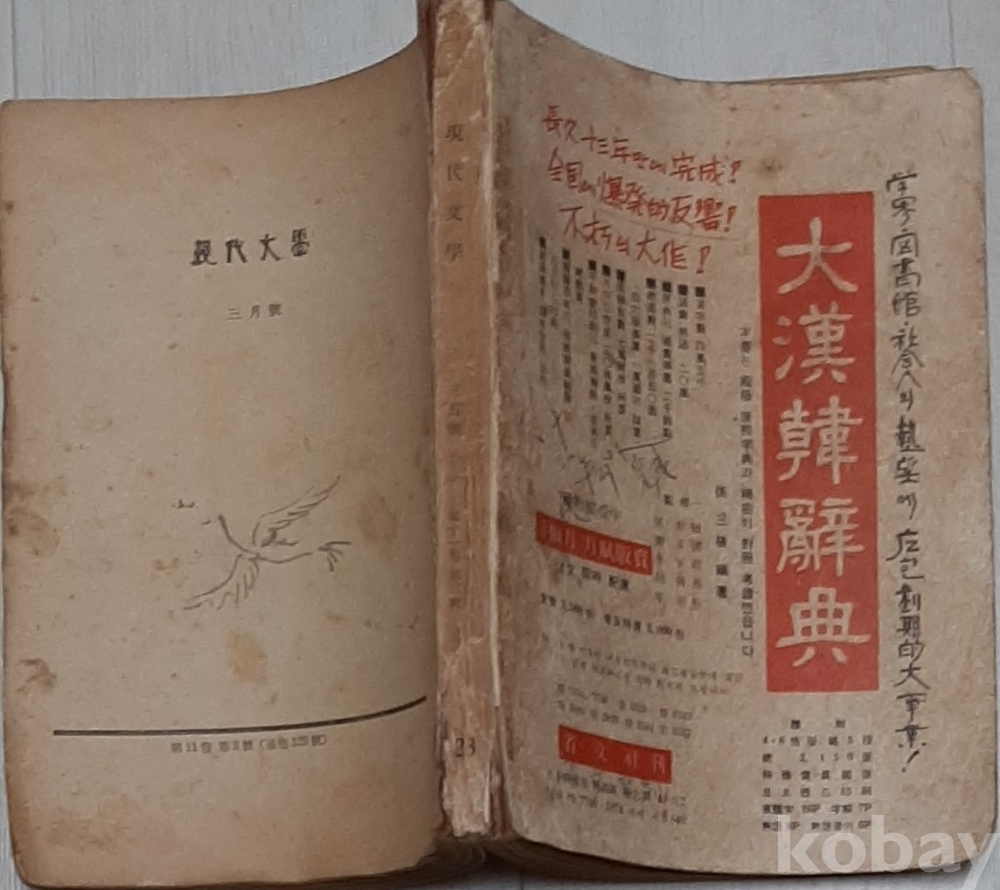 (별도)현대문학1961년3월호 NO75 : 낙장 없음, 낙서 없음, 목차 앞표지 훼손, 책등손상