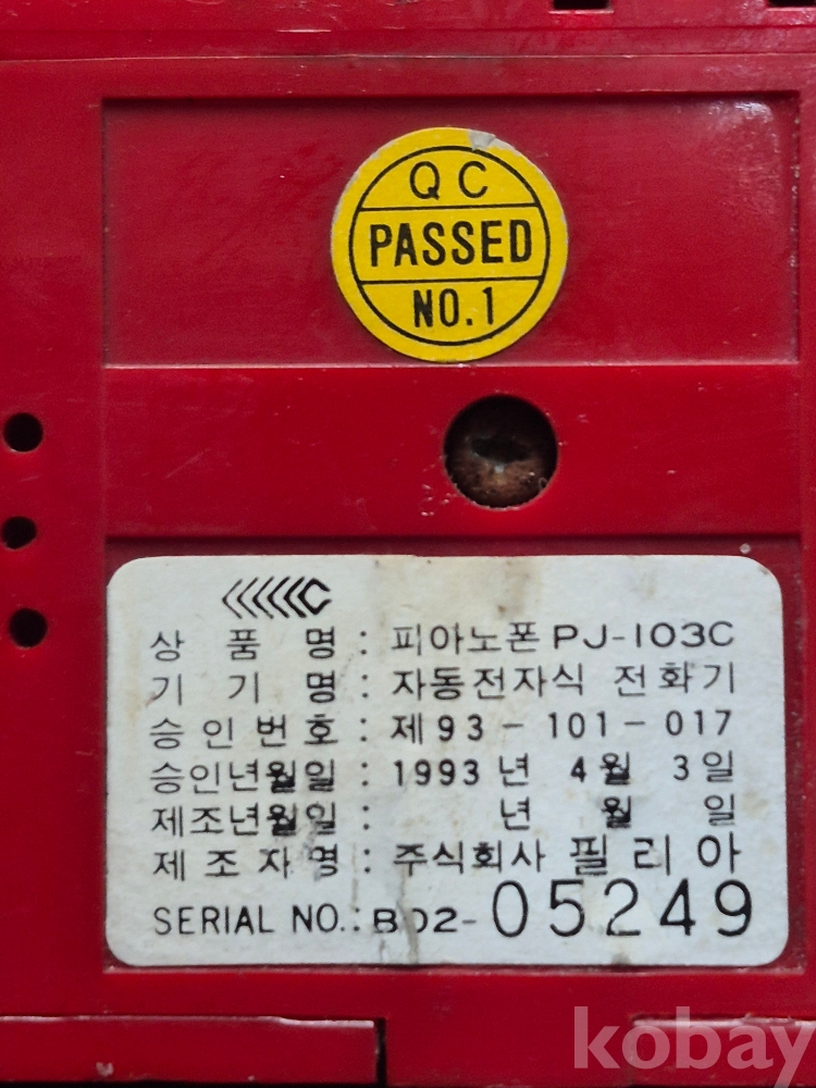1993년 4월 3일 생산된 피아노폰 자동 전자식 전화기 입니다 필리아 전화기 메이드 인 코리아 21.5*14*14.5