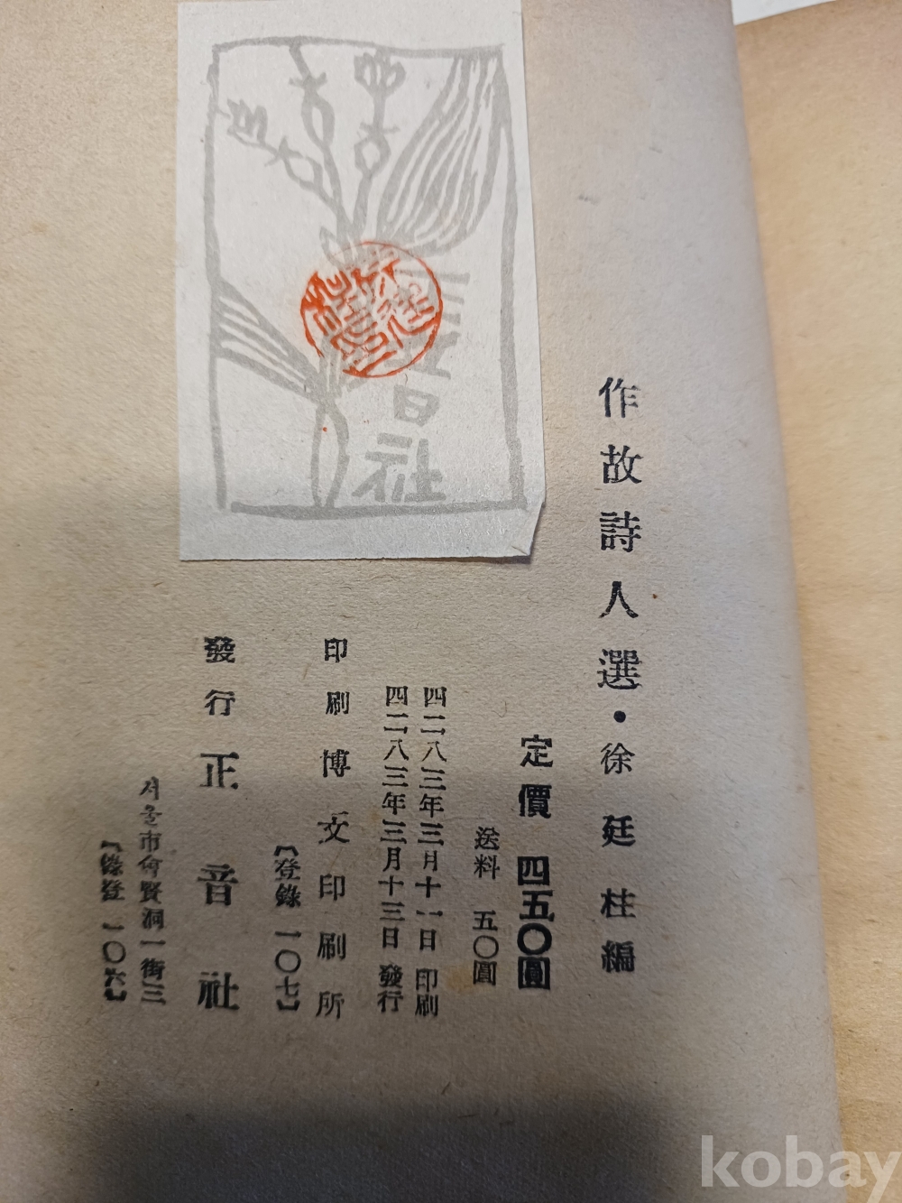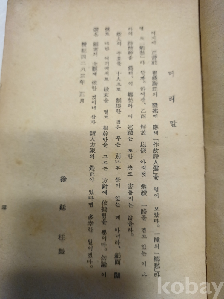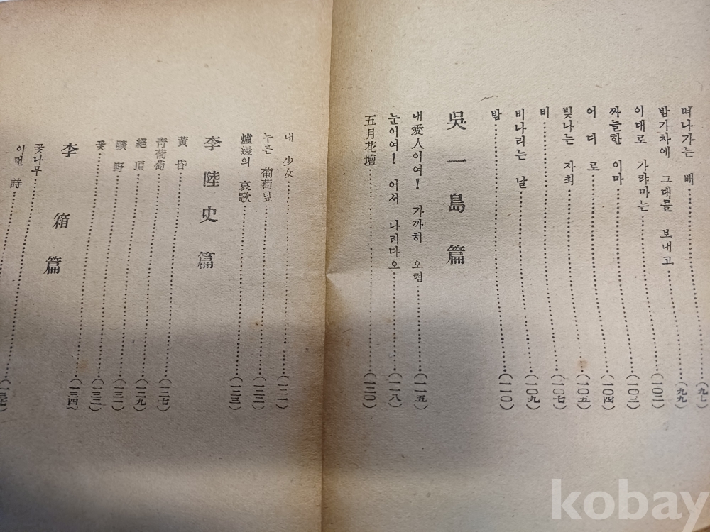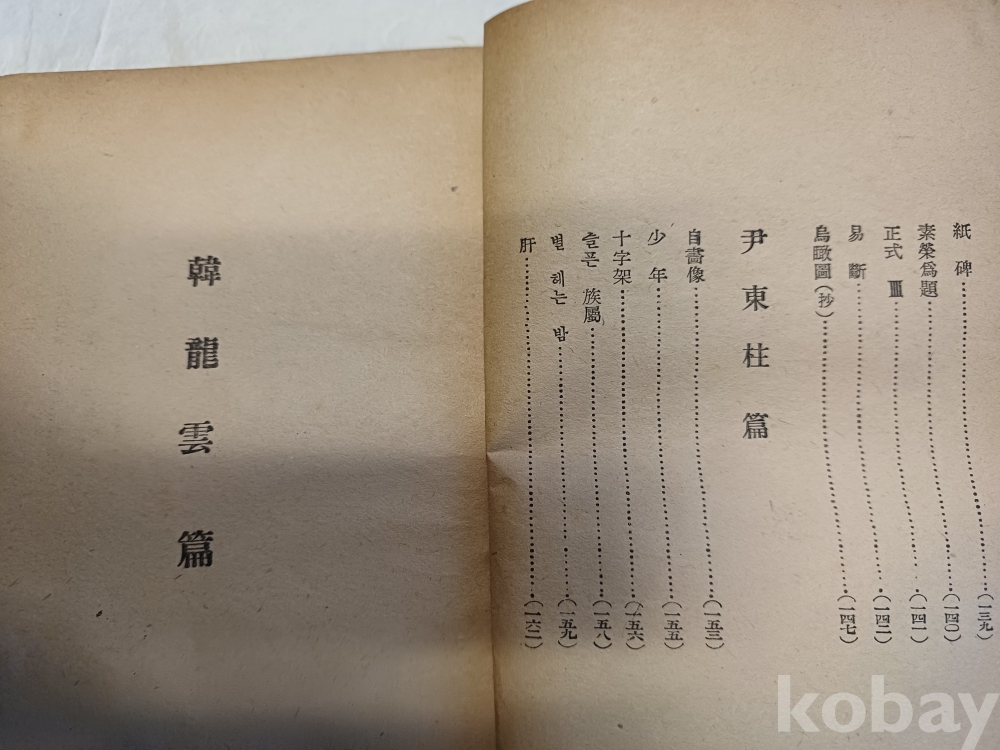 상태 a급 낙장 무 163p 윤등주.김소월.이육사.한용운.이상.박용철등등 유명시인의 작품이 수록 되있는 미당이 1953년에 발간한 책입니다 궁굼하신 내용은 문의해 주세요