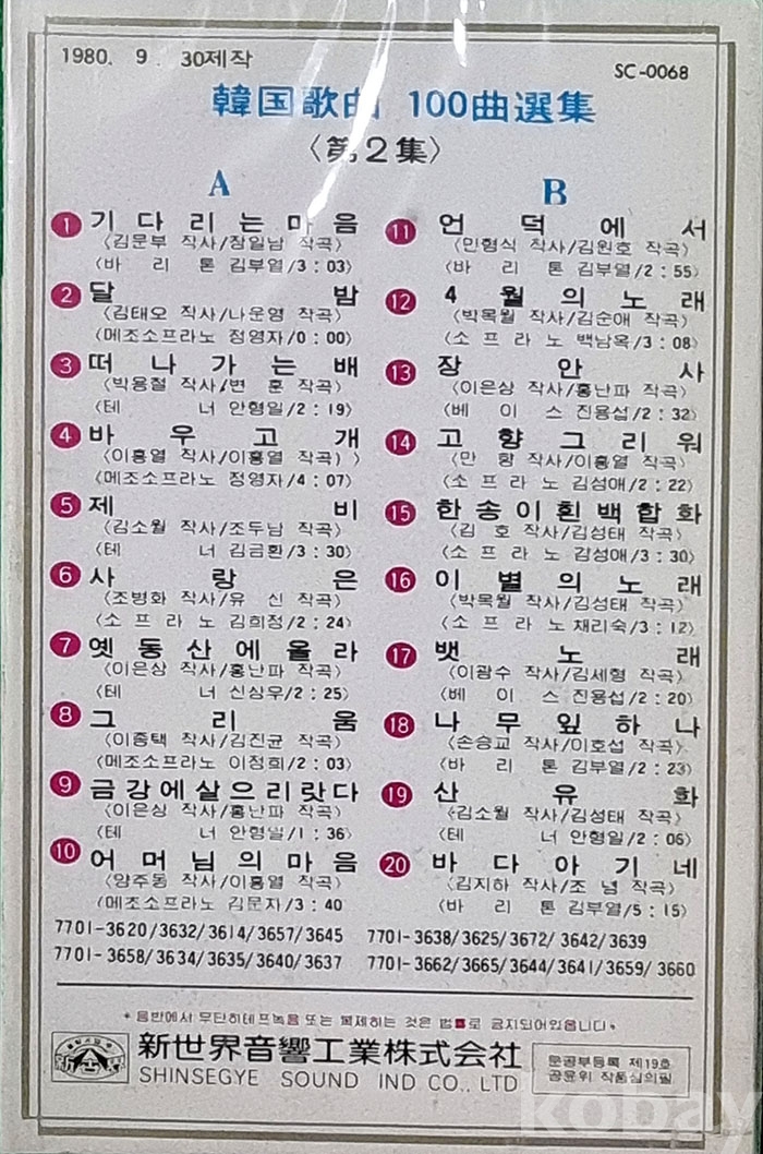 수록곡. 사진 참조바랍니다.