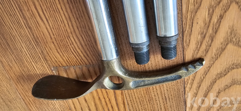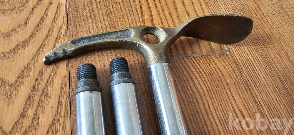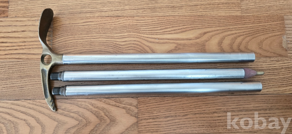 @. 동(브론즈)와 스테인레스 스틸로 만든 조립식 등산용 스틱.