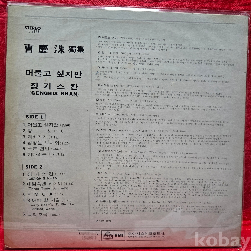 | 자켓상태 | EX : 약간의 마모, 모서리 찢김 존재 | 음반상태 | NM : 개봉했으나 미사용급, 스크래치 없음 | 발매정보 | 초반 | 가사지여부 | 무 |