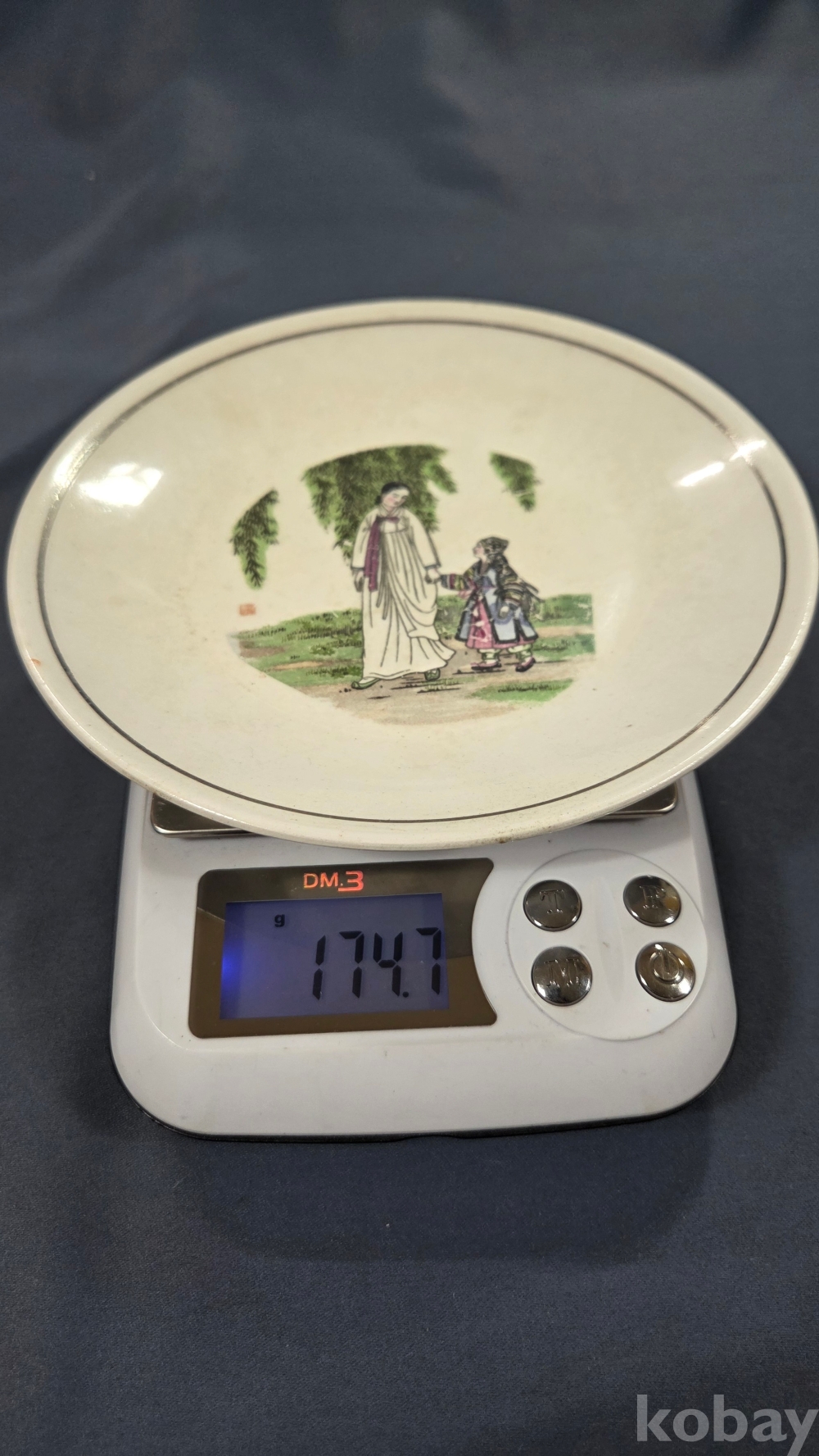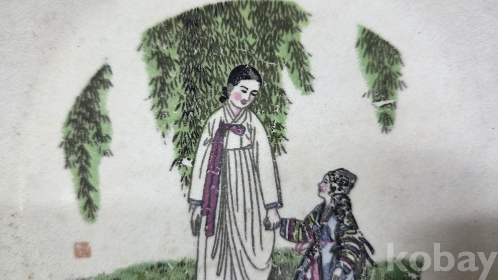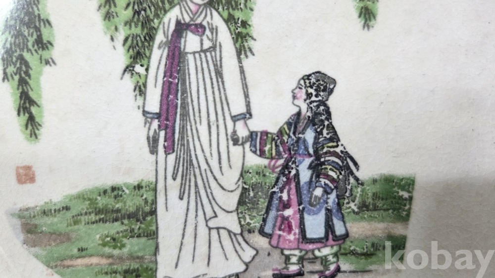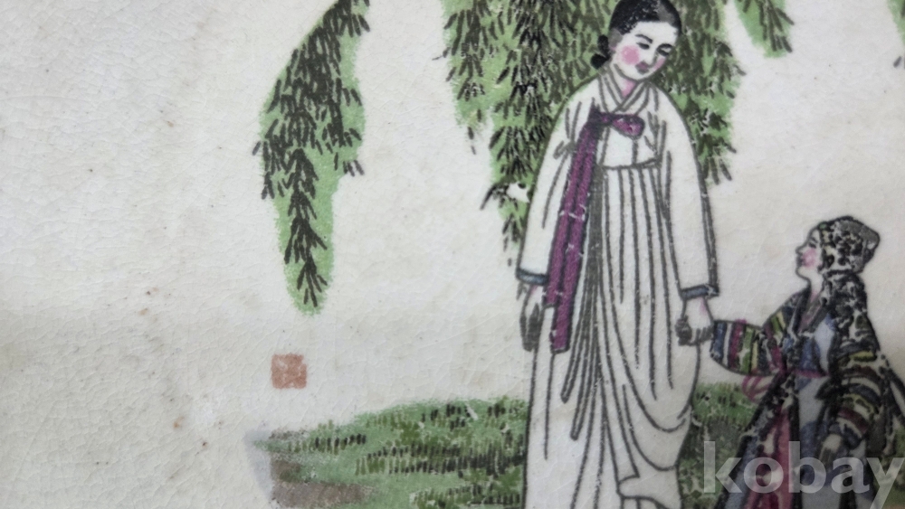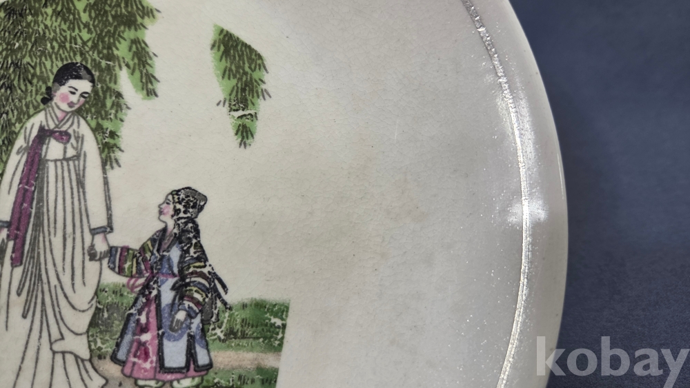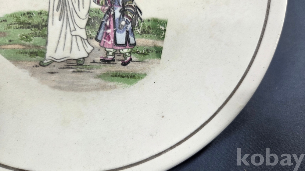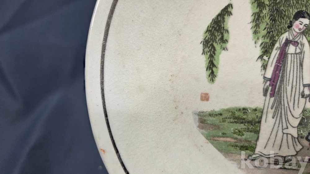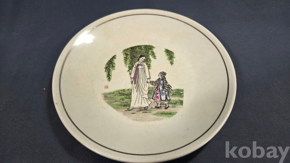 풍속화 문양이 전사로 들어있는 빈티지 도자기 접시입니다.