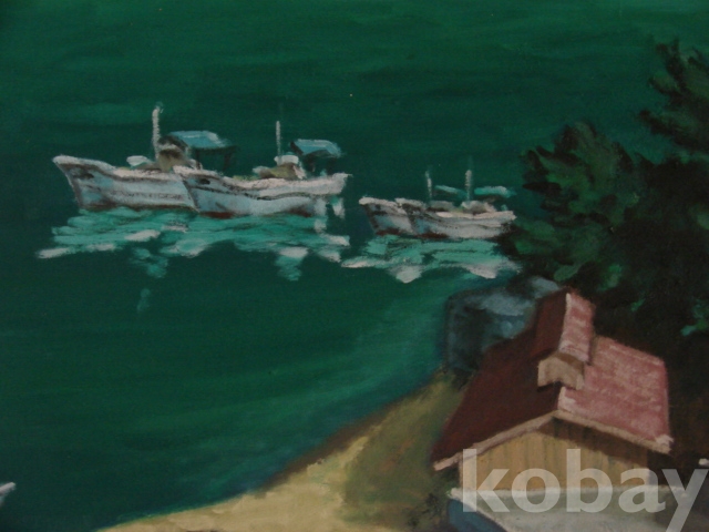 대전작가 신병석의 유화 바닷가 풍경(73×60)입니다.
