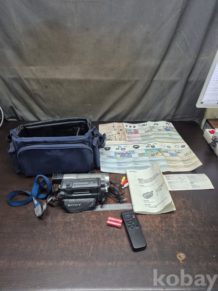 소니 비디오 카메라 레코더 CCD-TRV408 본체 가방 사용설명서 AV케이블 리모컨 소니 건전지 미사용품 충전기 없음 34*14*20