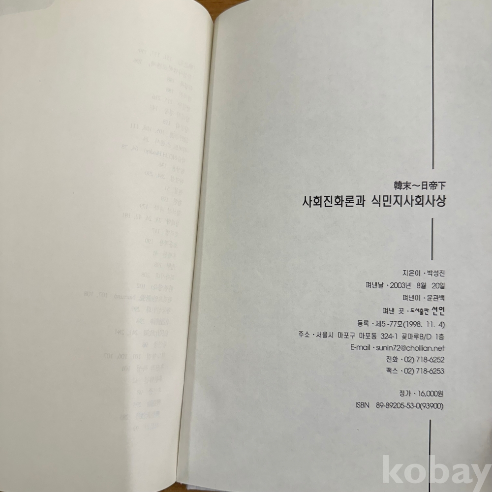 [한국근대사, 사회진화론] 박성진, <사회진화론과 식민지 사회사상>, 선인, 2003, p. 335, 상태 중상급(사진참조)