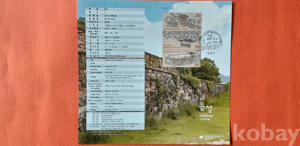 2021년 읍성 15매 전지(안내카드 포함) 입니다.