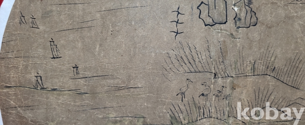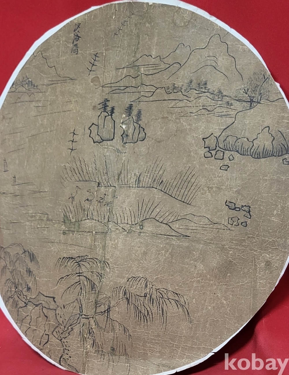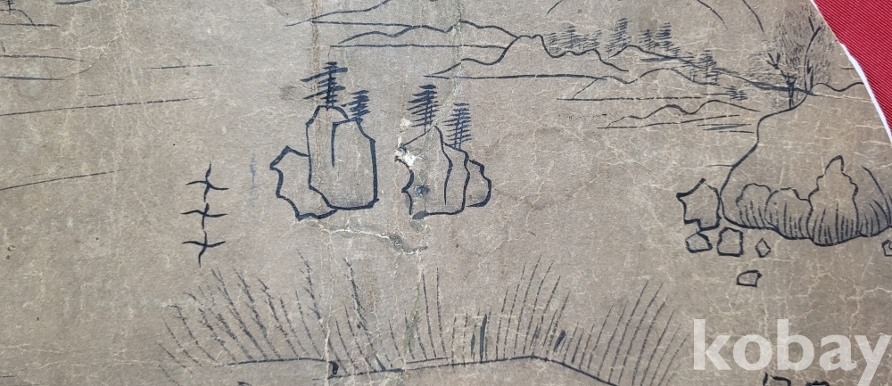 조선말 연대 갖춘 장지에 그려진 사락홍(沙落鴻) 화제가 보이는 산수화입니다,