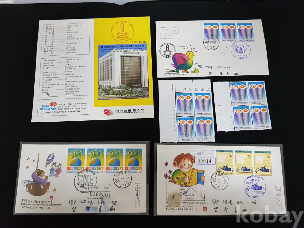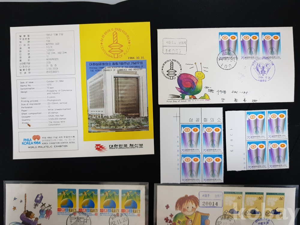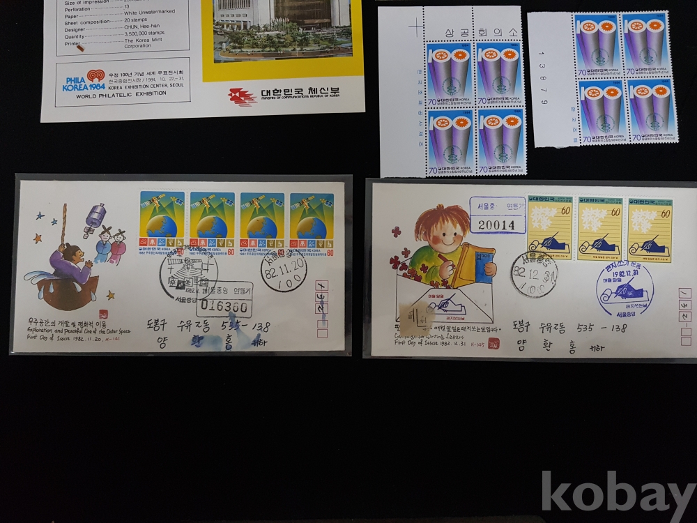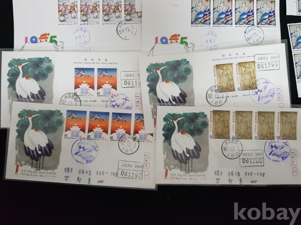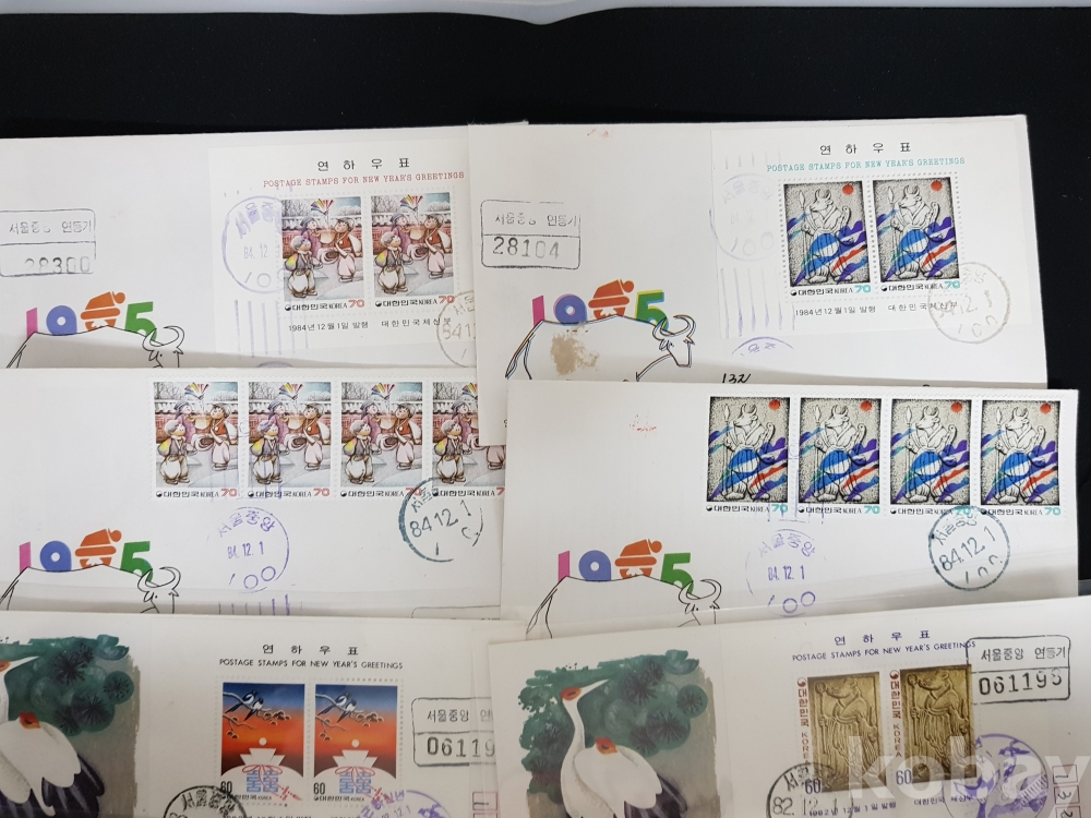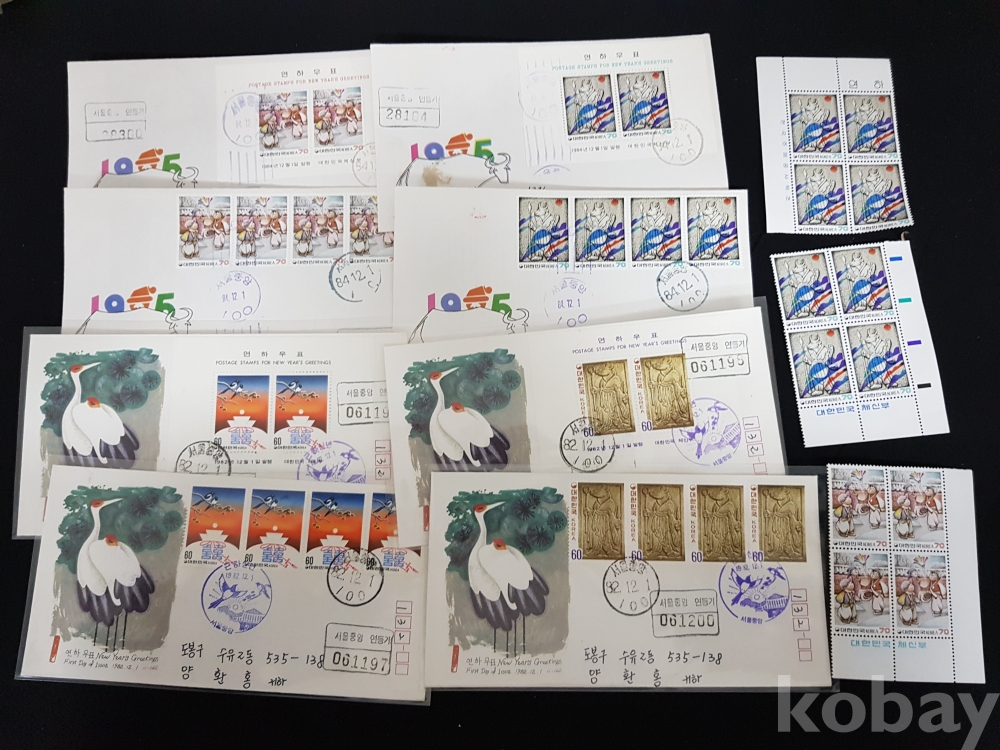 - 1980년대 연하우표 안내카드, 초일봉피, 명판 등 모음