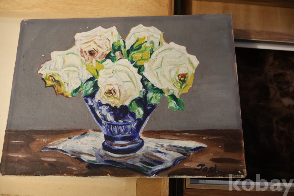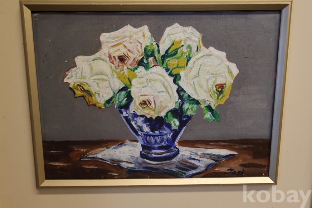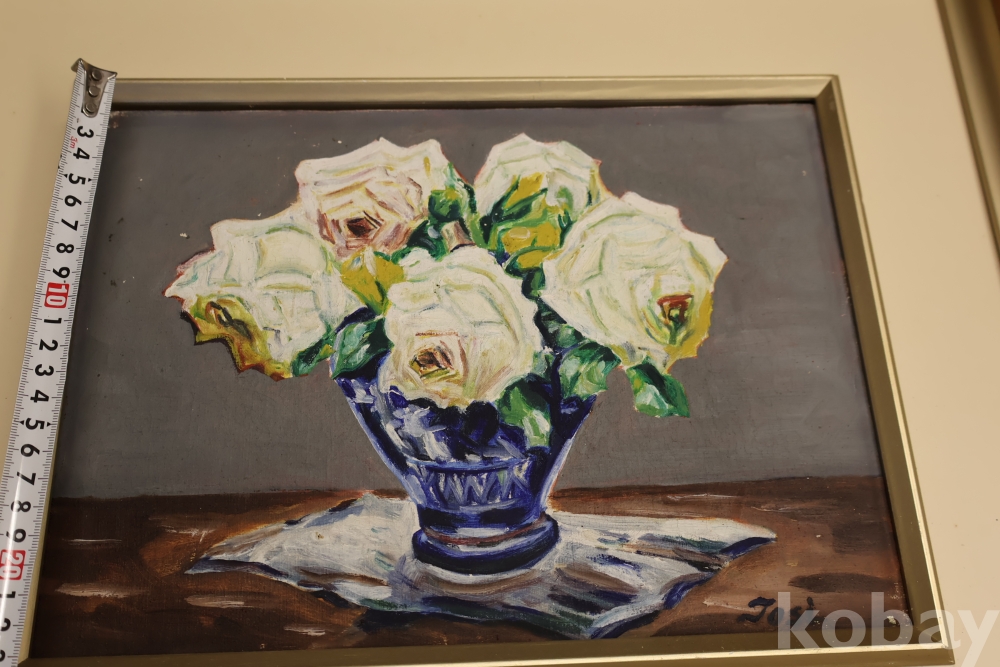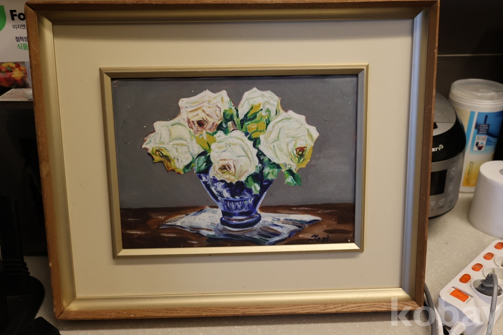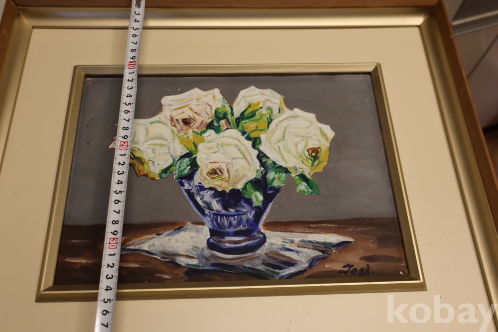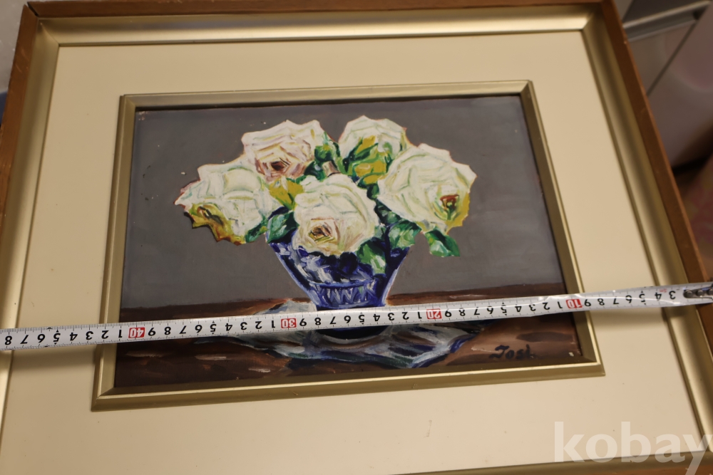 멋진 장미 유화 임니다 오리지날 액자를 가진 명화 이며 두터운 색감 터치 구도 등등 화가의 정성을 가진 명화 이며 TOSHI?JOSHI?의 낙관 이 보임니다