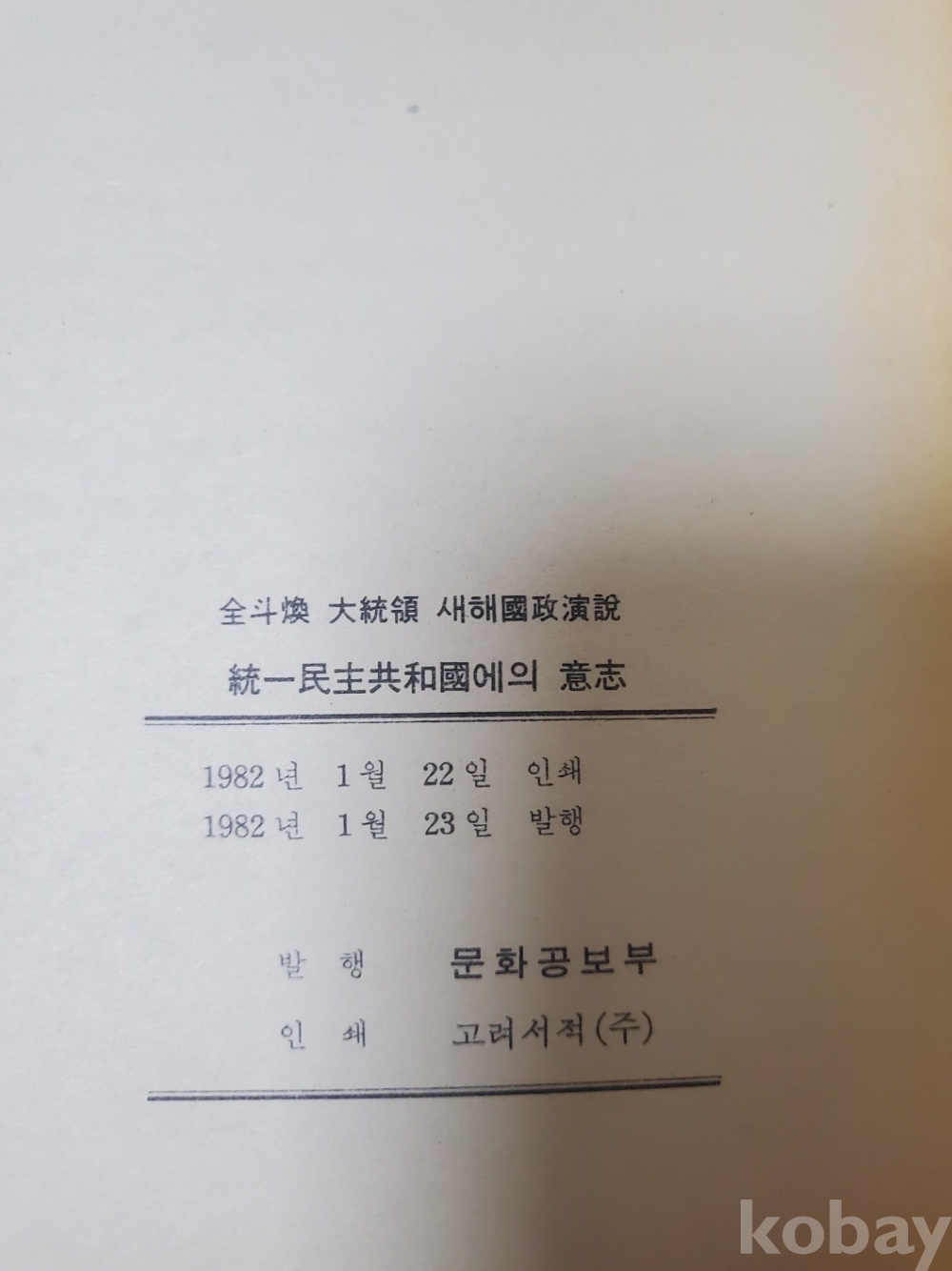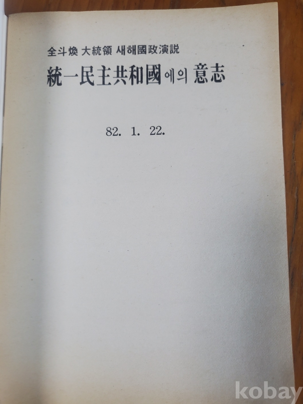 1. 전두환대통령 새해국정연설 - 통일민주공화국에의 의지, 문화공보부, 1982년, 79쪽, 상태 상, 사진 참조