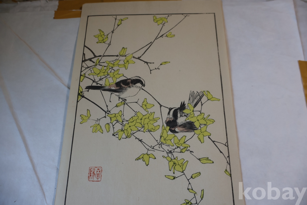 1930 대 목판화 새 임니다 아름다운 디자인 구도 섬세 함을 가진 명화 임니다 화가의 낙관이 보임니다