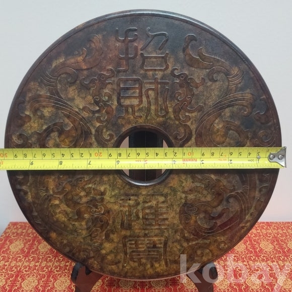 지름 30센티에 이르는 대형급 옥패입니다. 귀하고 단단한 옥을 잘 선별하여 문양을 넣었습니다 크기만큼이나 무겁고 옥이라서 가공이 쉽지 않던 제품입니다. 좌대도 함께 드립니다 시중에서는 이정도의 제품은 이 가격으로 구하기 상품입니다