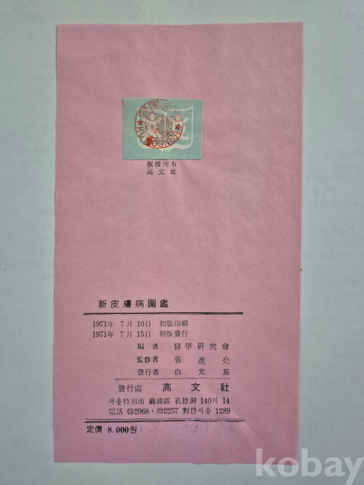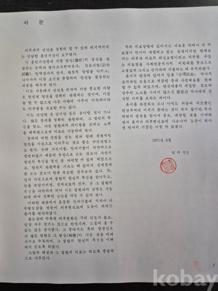 1971년 7월 15일 발행된 신피부병도감 (Colour Atlas of Skin Disease) 초판본입니다