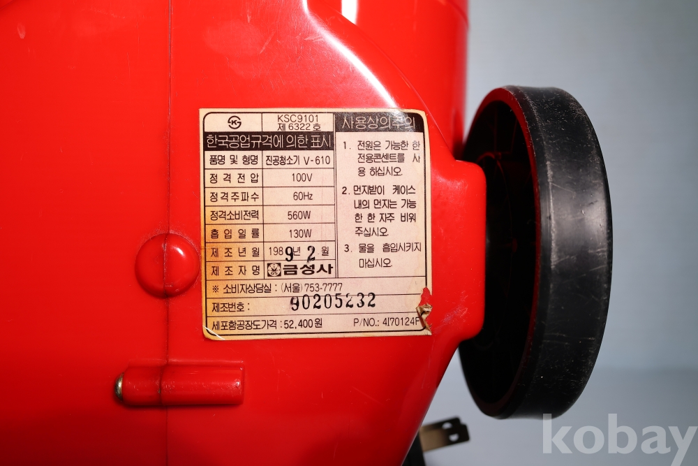 본 출품작은 1980년대 후반 대한민국 가정의 근대화를 상징하는 대표적인 가전 사료인 옛 금성사(현 LG전자)의 '진공청소기 V-610'입니다.
