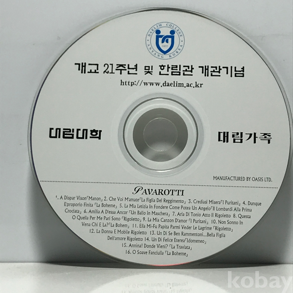 CD 40,100-64 PAVAROTTI (대림대학 기념) 개교 21주년 기념 파바로티 성악곡 모음집 자켓없음 디스크 : 사용품 잔기스다수/ 튐 가능성