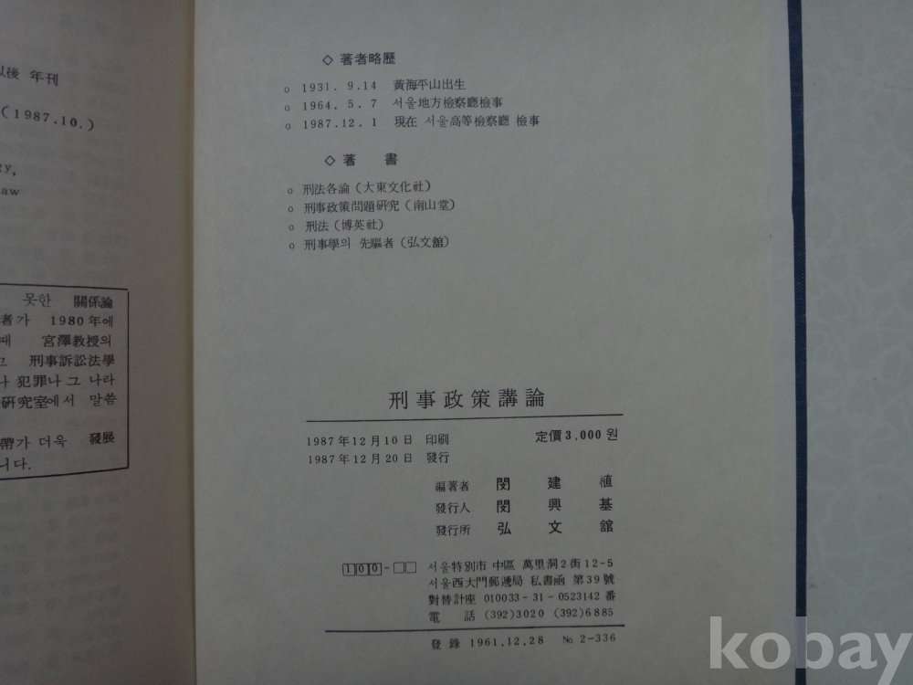 형사정책 강론 (민건식 저, 1987년, 홍문관)
