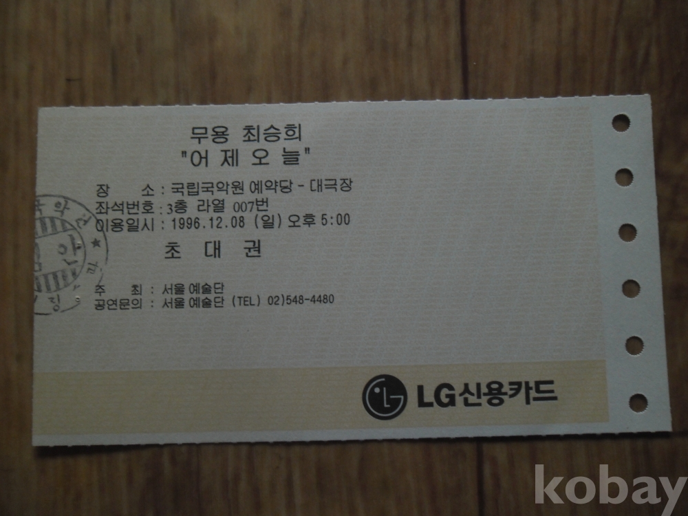 1996년 무용 최승희"어제 오늘" 초대권(국립국악원)