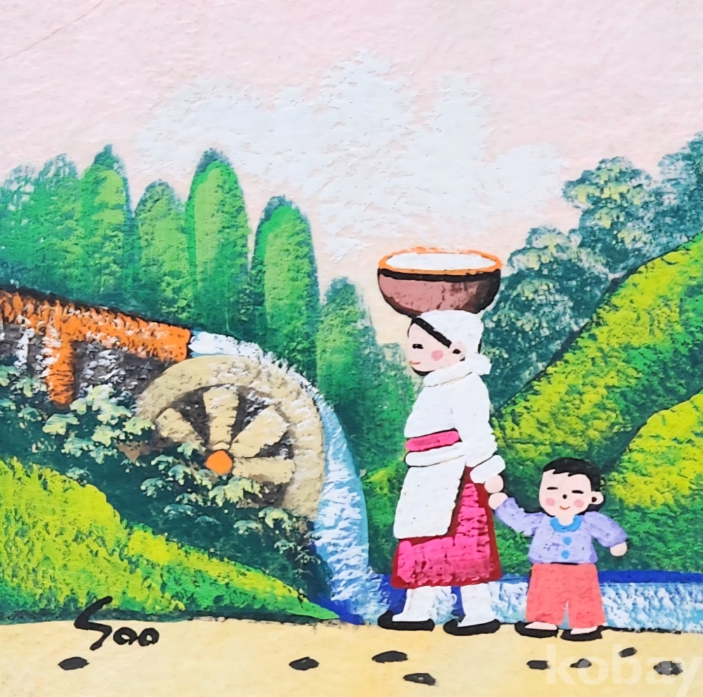 ##설맞이무료배송이벤트## 서양화가 경동수<어린시절>14cmx14cm<액자23cmx23cm>