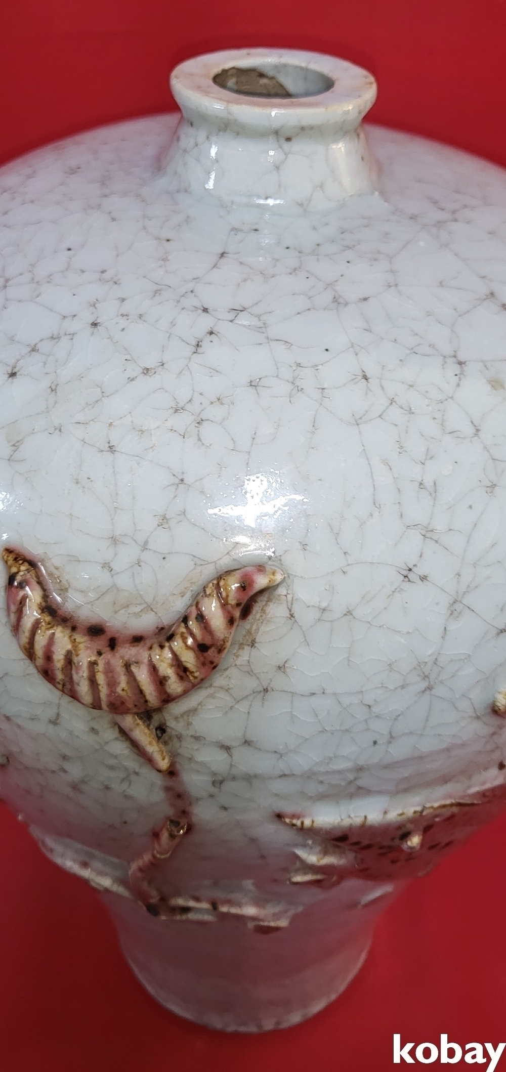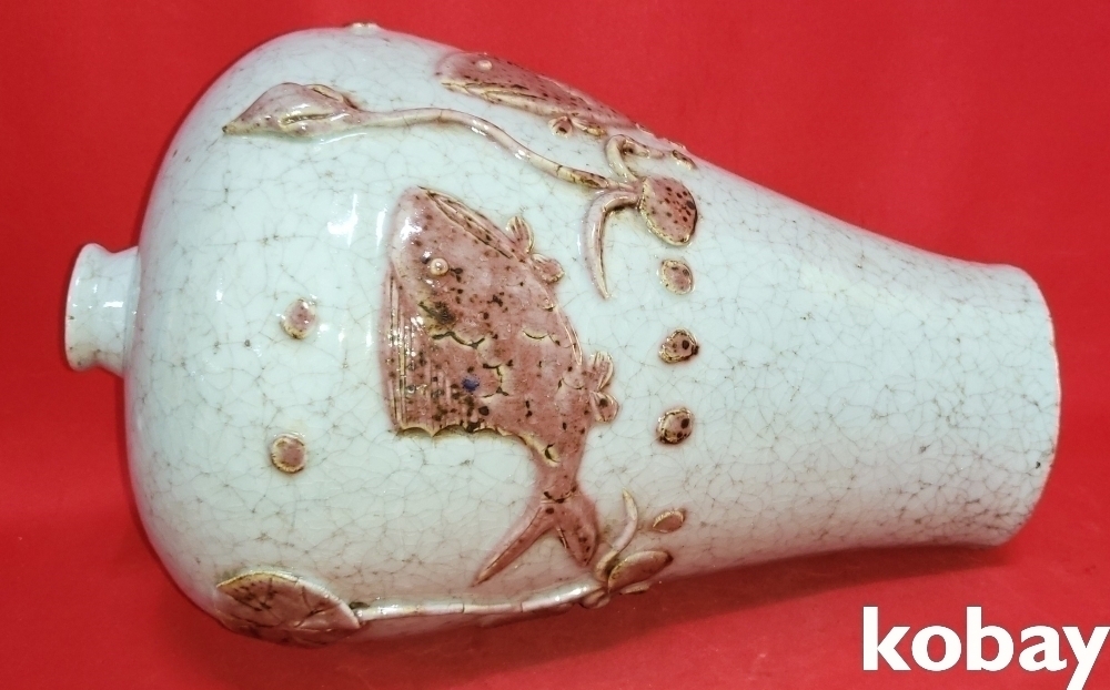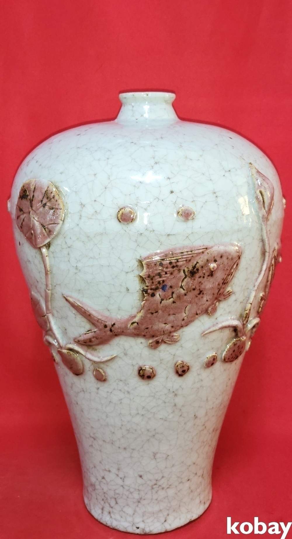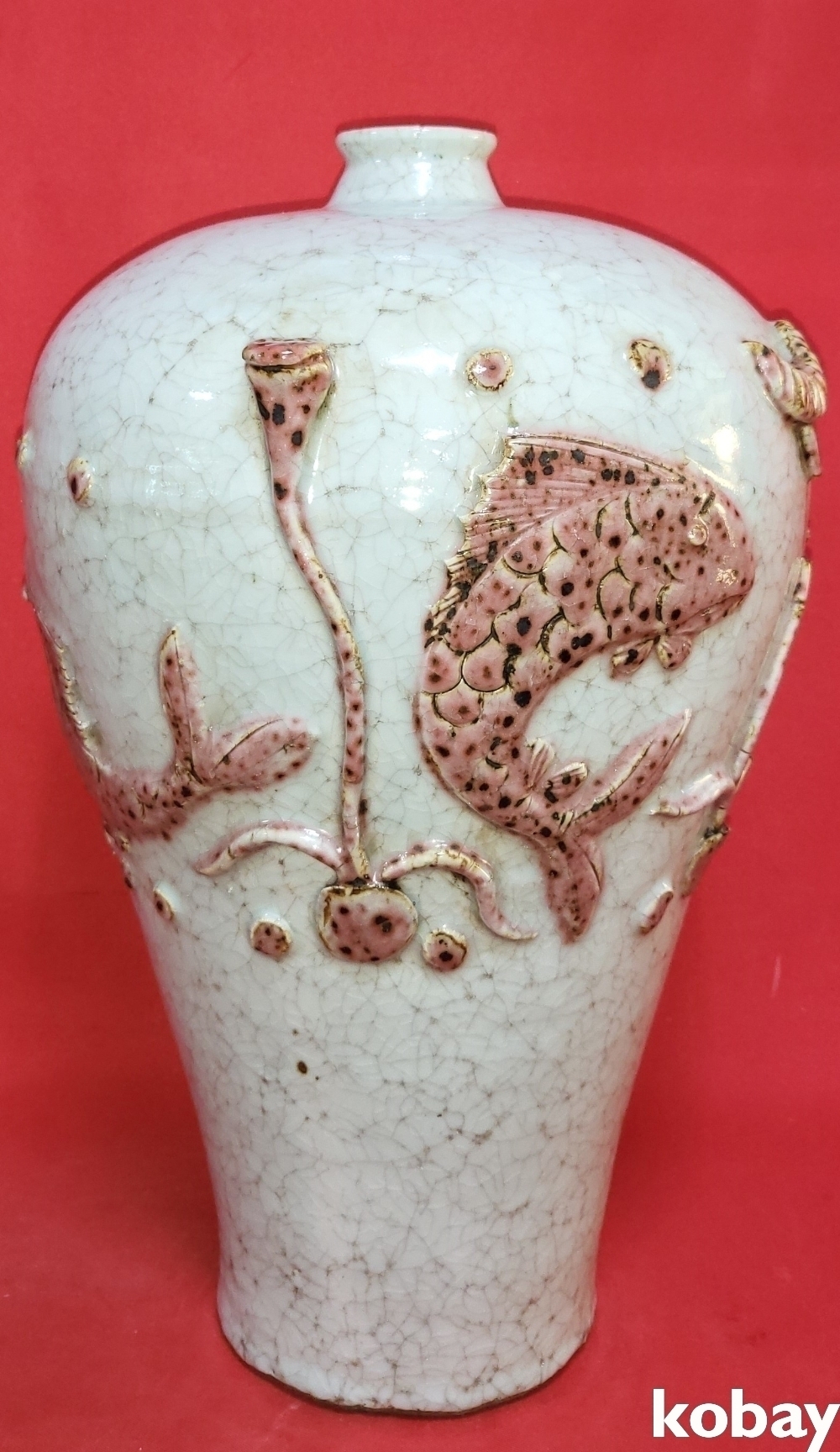 명말 청초로 사료되는 유리홍 어문 매병입니다,