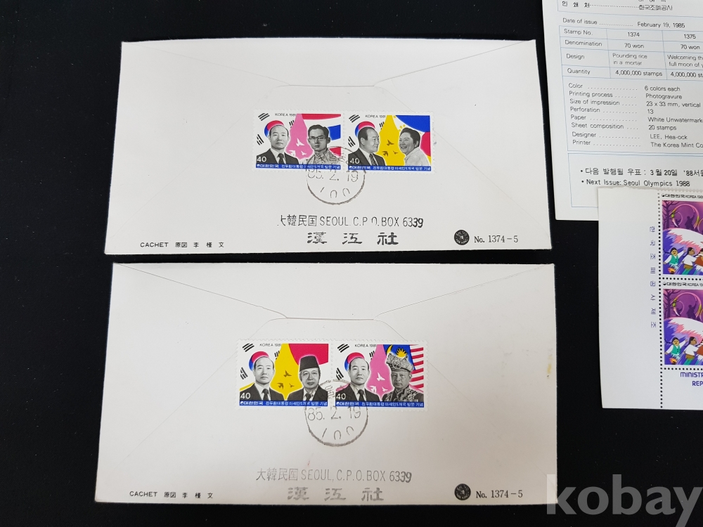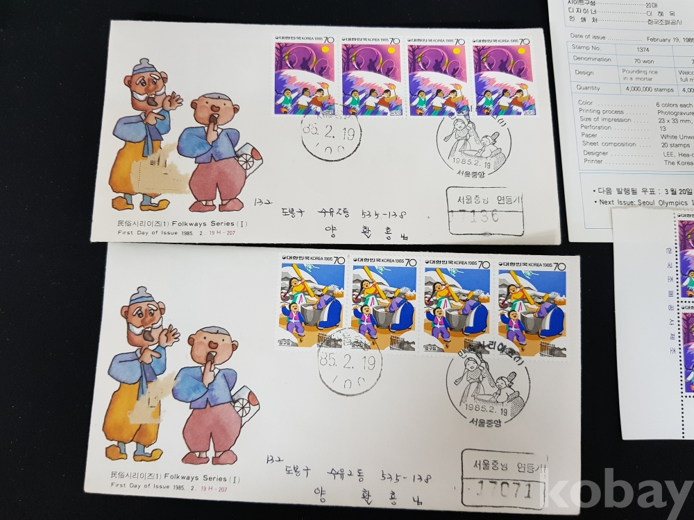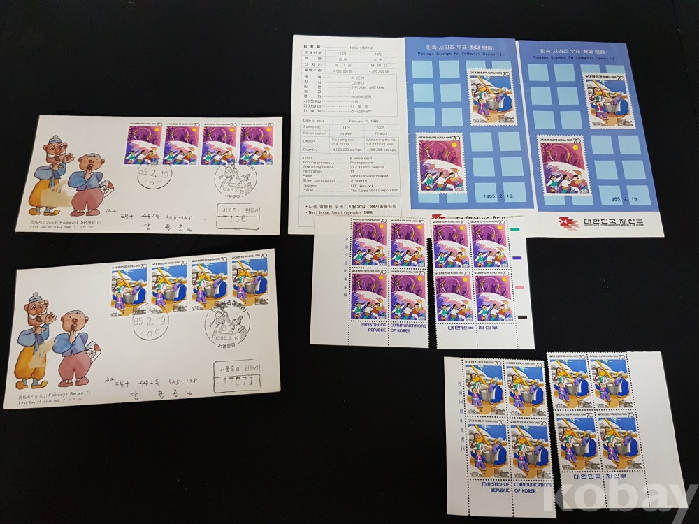 - 1985년 민속시리즈 제 1집 안내카드, 초일봉피, 명판 등 모음