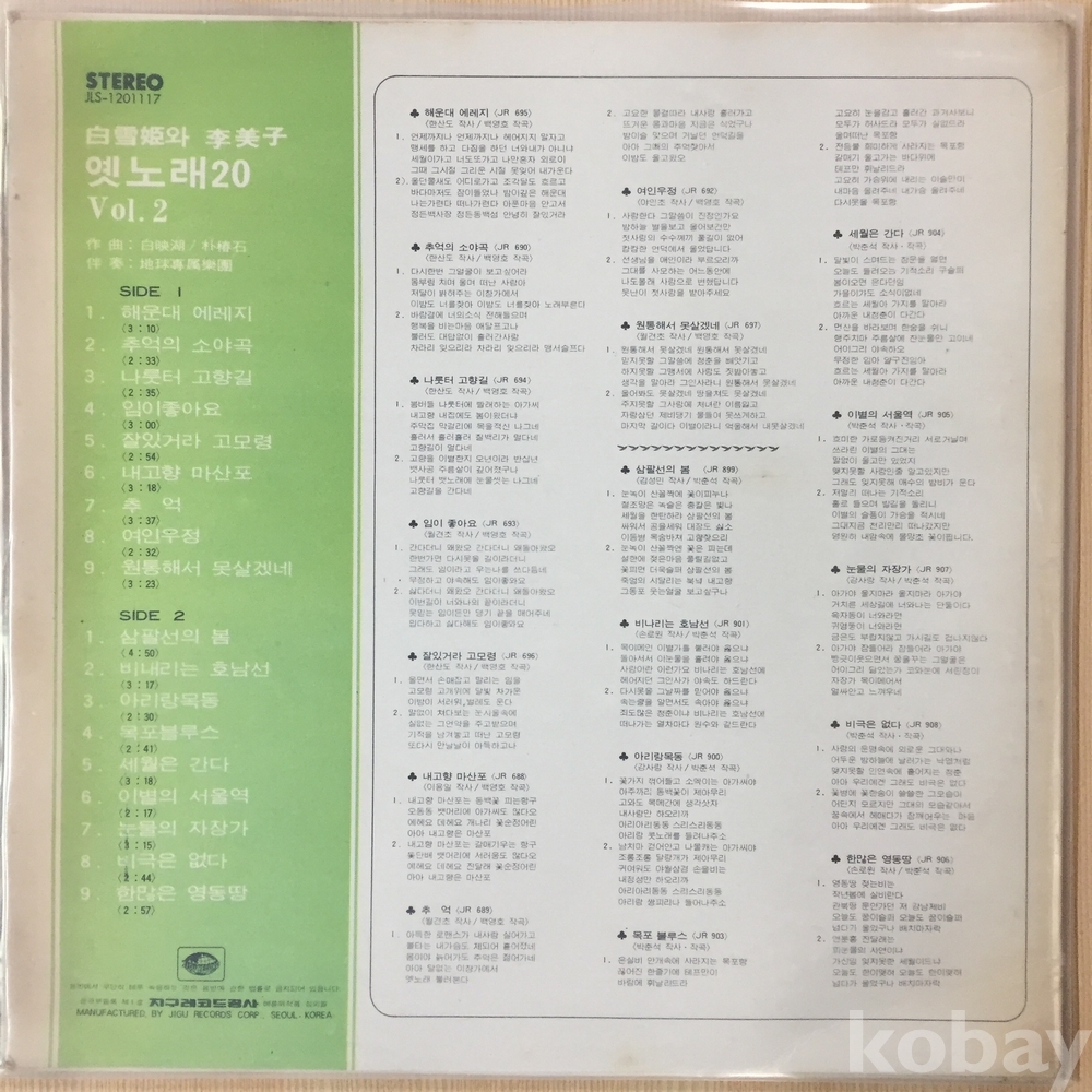 . 가요음반 대부분은 휘어짐이나 손상을 방지하기 위해 무지싱글자킷을 하나 더 사용하여 보관되었던 음반들입니다.