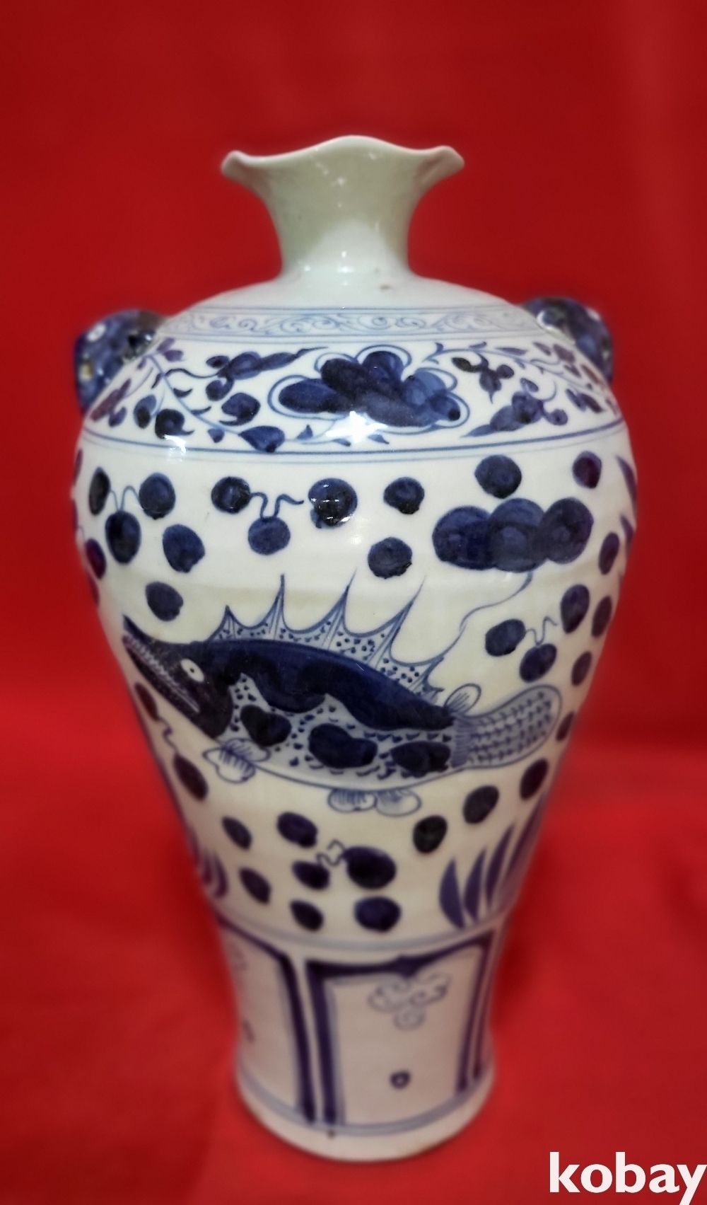 징기스칸 관지 쌍어 문양 화형 매병입니다,